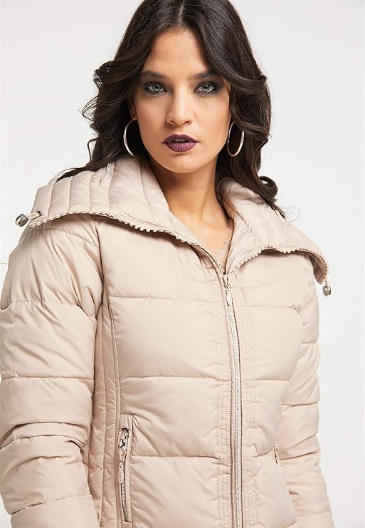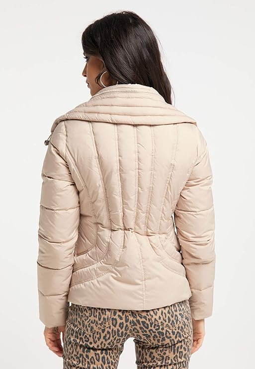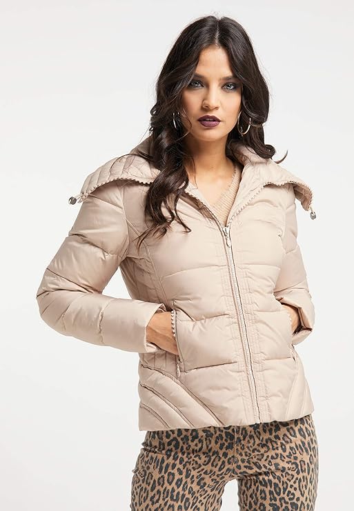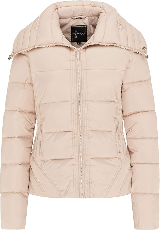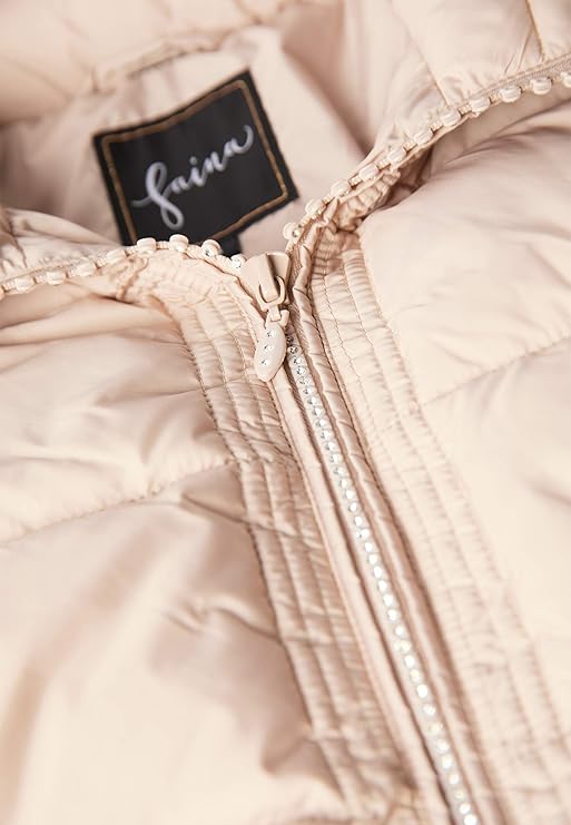 Ta pikowana kurtka od faina doda blasku Twojej garderobie. Modne linie tworzą kobiecą sylwetkę. Dodatkowo zamki błyskawiczne wysadzane kryształkami tworzą efekt połysku. Szeroki kołnierz stanowi kolejny stylowy akcent i można go indywidualnie dopasować. Boczne kieszenie zapinane na zamek błyskawiczny i zintegrowany kaptur wygodnie uzupełniają elegancki design.