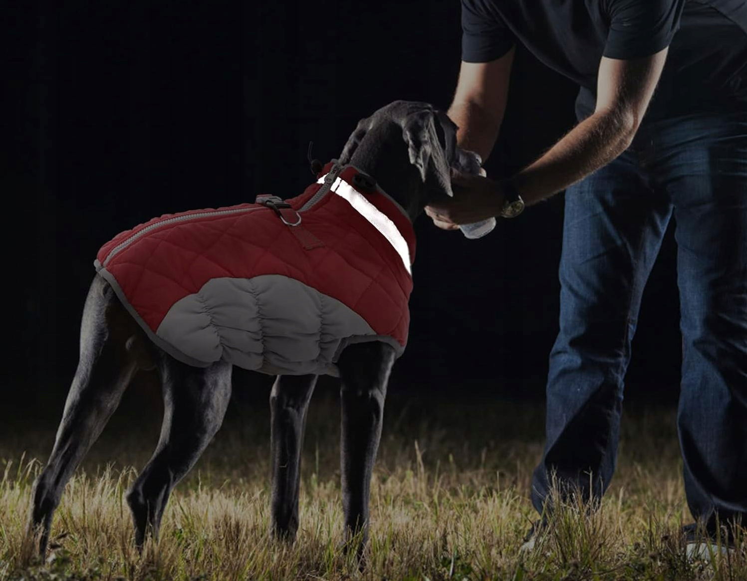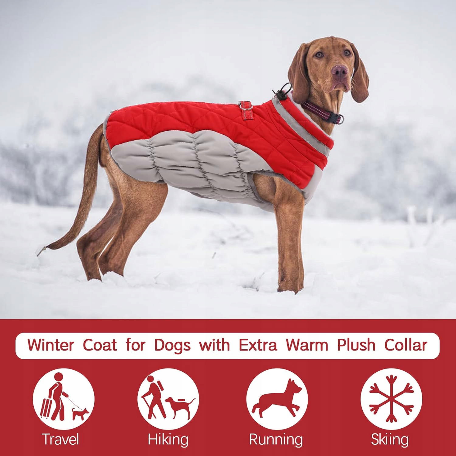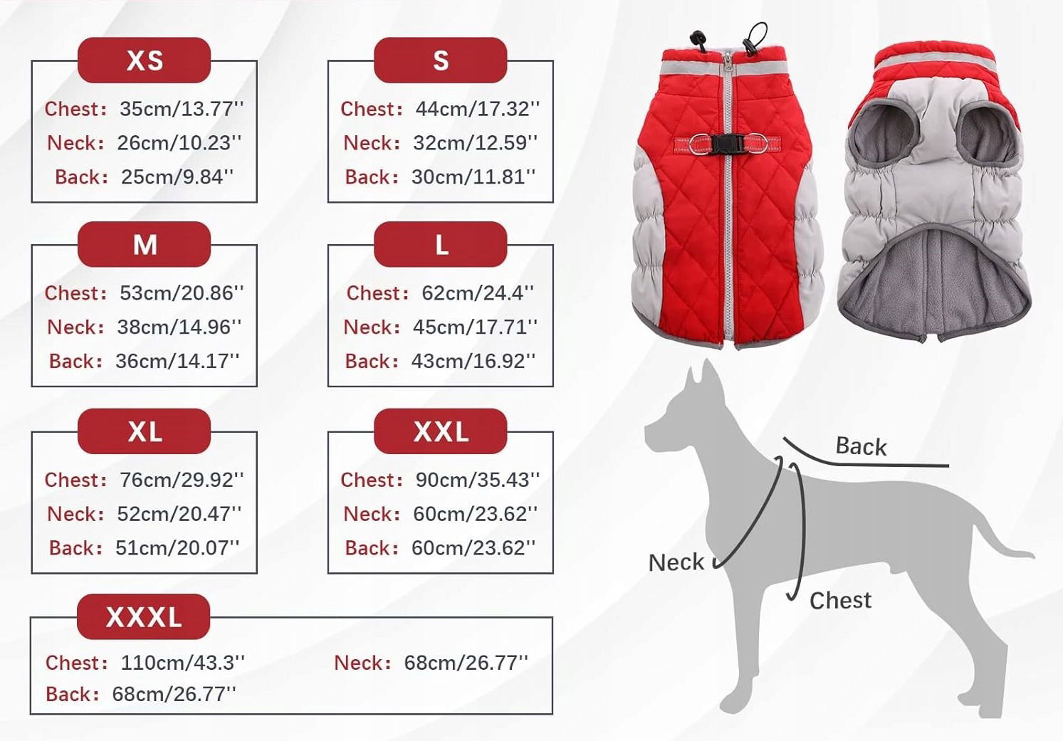 Ciepły i wodoodporny materiał: Zewnętrzna warstwa zimowej kurtki dla psa wykonana jest z wodoodpornego materiału, dzięki czemu pies będzie suchy i będzie mu wygodnie w deszczowe i śnieżne dni. Polarowa podszewka jest miękka i przytulna dla Twojego pupila, zapobiega utracie ciepła i zapewnia Twojemu futrzanemu przyjacielowi ciepło przez cały dzień.