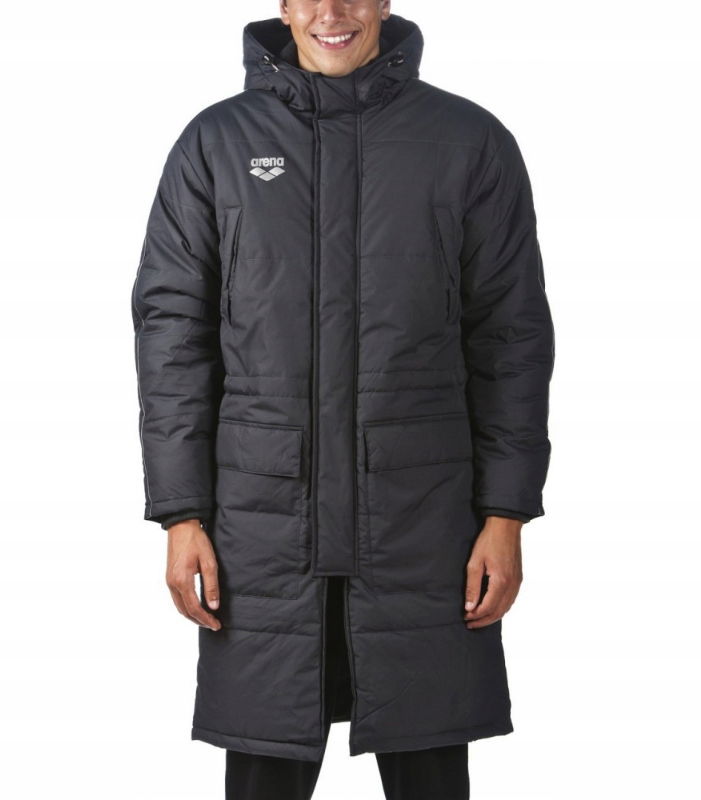 Sprytne detale, takie jak obszerny kaptur ze sznurkiem, ukryte zapięcie i prążkowane mankiety poprawiają izolację. Użyj dużych przednich kieszeni z klapkami na przedmioty osobiste i technologię.