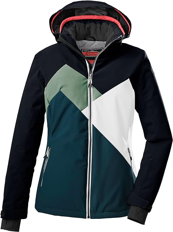 Damska kurtka zimowa Killtec 83 jest wykonana z wytrzymałego i membranowego materiału. Kurtka posiada klejone szwy oraz przeciwśnieżny kołnierz z antypoślizgowym nadrukiem. Stały kaptur można łatwo regulować, wyższy kołnierz ma ochronę podbródka. Mankiety z otworami na kciuki zapobiegają przedostawaniu się zimna i wiatru, rękawy można łatwo regulować za pomocą rzepów. Z przodu znajdziesz dwie główne kieszenie zapinane na zamek, jedną kieszeń na karnet narciarski na lewym przedramieniu. Wewnątrz kurtki znajduje się kieszeń na okulary oraz np. telefon komórkowy. Nie zawiera PFC