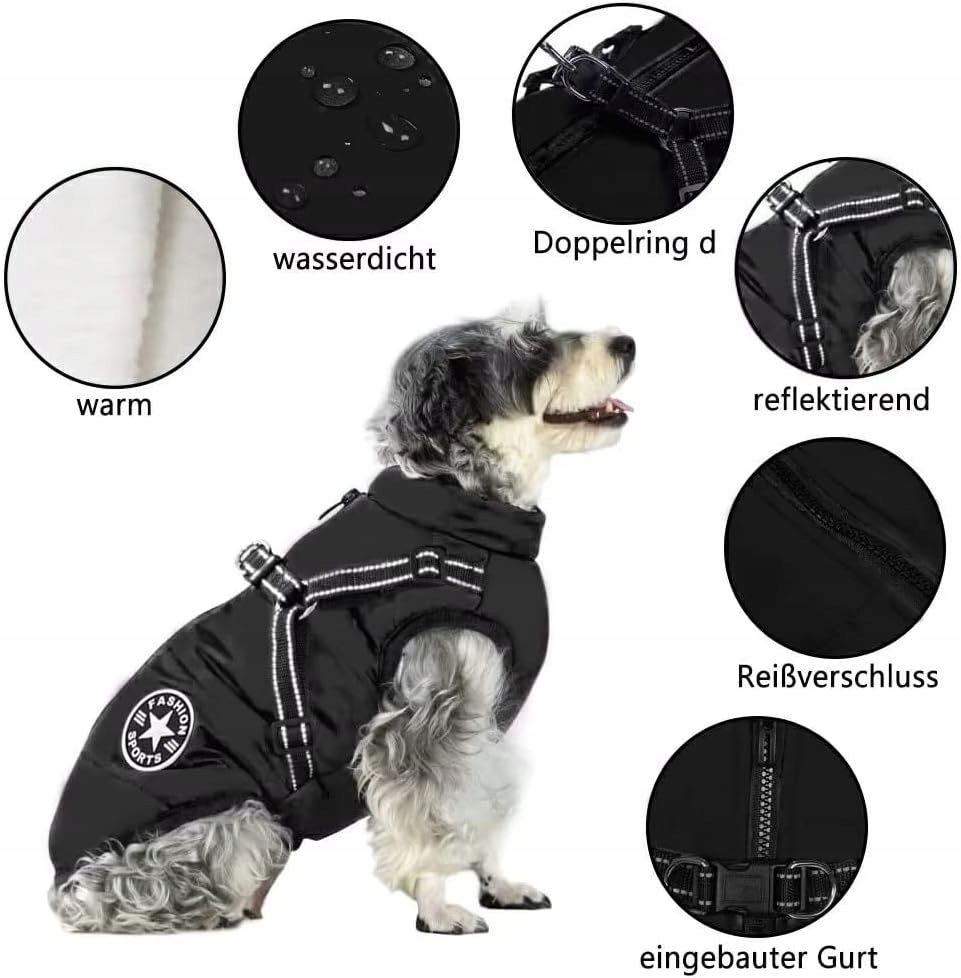 Voarge Kurtka dla psa, kamizelka zimowa, kurtka z uprzężą dla małych psów, płaszcz dla psa, wodoodporna, nadaje się do prania, odblaskowe paski, trwały pierścień D (3XL, czarna)