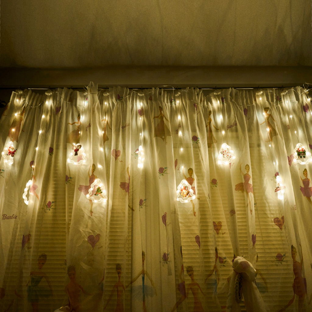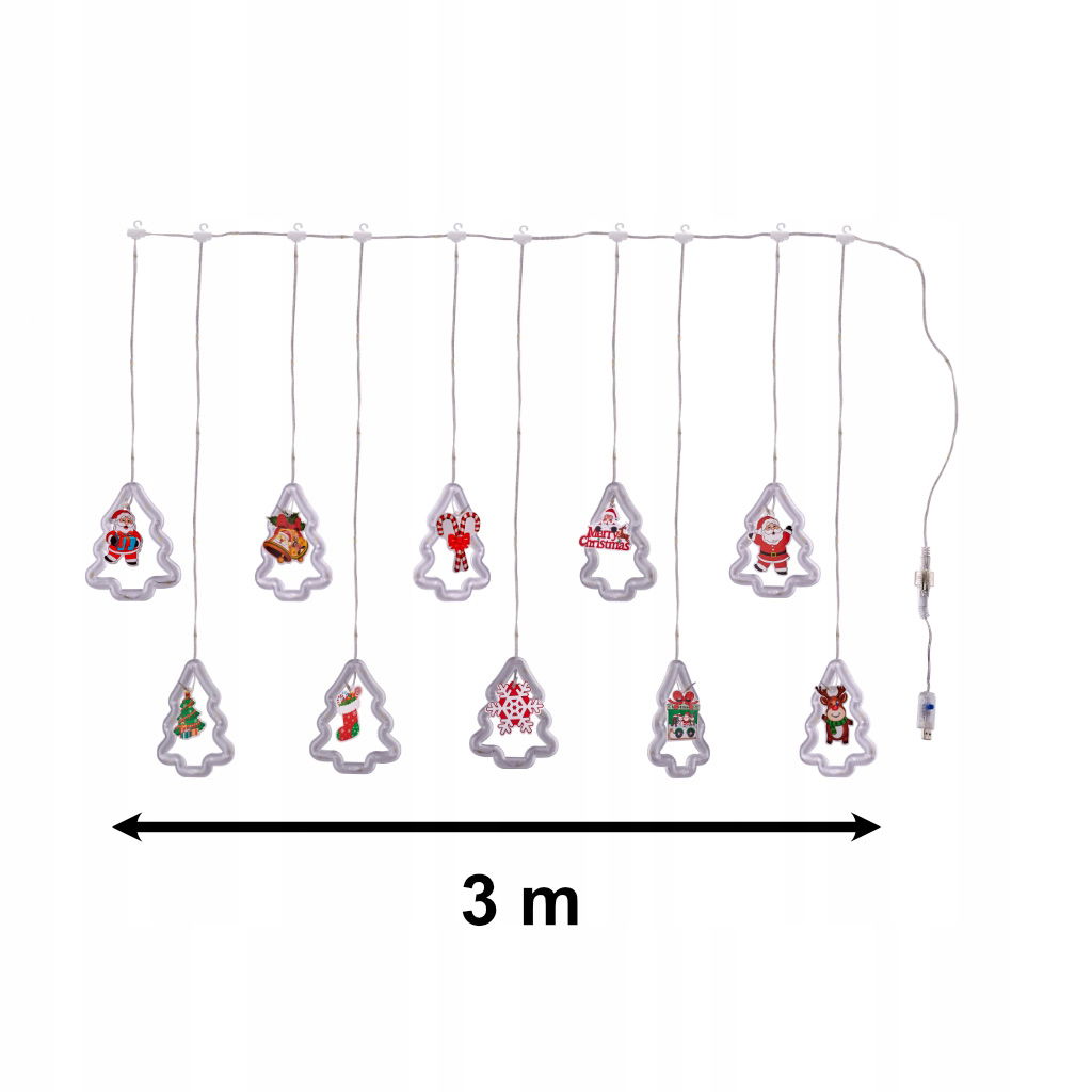 LED KURTYNA Z OBRAZKAMI BOŻE NARODZENIE W CHOINKACH 3M 10 ŻARÓWEK