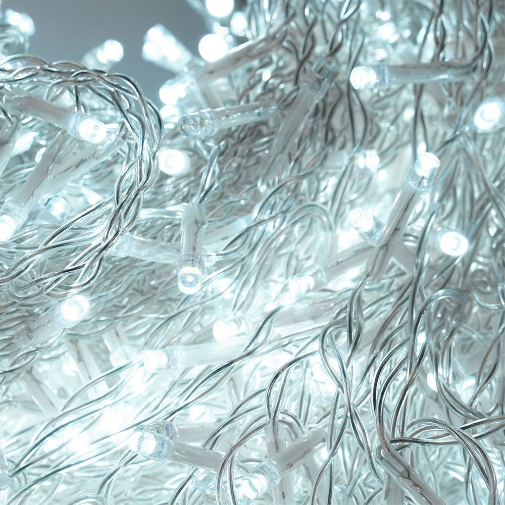 Zimna barwa światła - Girlanda posiada 500 diod LED o zimnej, białej barwie - umieszczone w przezroczystych przewodach. Oświetlenie prezentuje się bardzo efektownie.