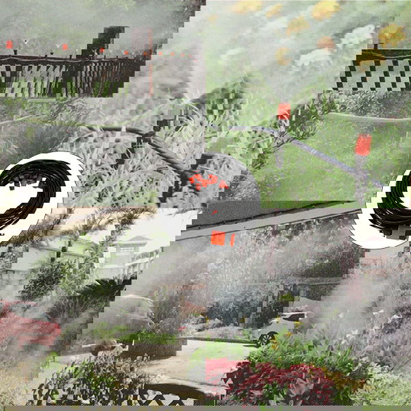 - Przewód zraszacza wystarczy podłączyć do węża ogrodowego lub kranu, aby móc się cieszyć delikatną mgiełką ochładzającą Twój dzień!