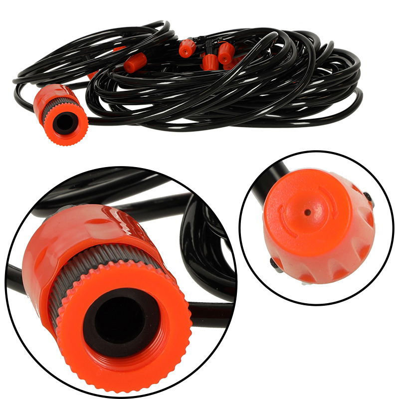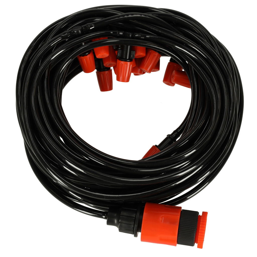 DUŻY ZASIĘG MGIEŁKI - Cały zraszacz ma długość 15 metrów oraz posiada 15 dysz rozmieszczonych w odstępach jednometrowych – dzięki temu wodna mgiełka ma naprawdę spory zasięg. Co więcej, w razie potrzeby wąż można przyciąć do potrzebnej długości, co umożliwia modyfikowanie odległości pomiędzy dyszami. Dysze posiadają regulację natężenia strumienia wody – dzięki czemu możesz dostosować moc wydobywającej się mgiełki do własnych potrzeb.