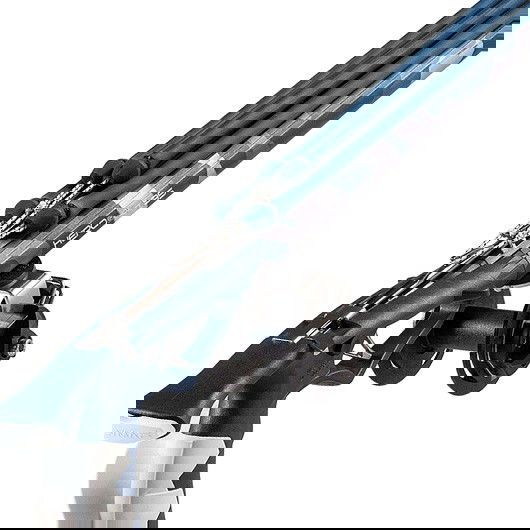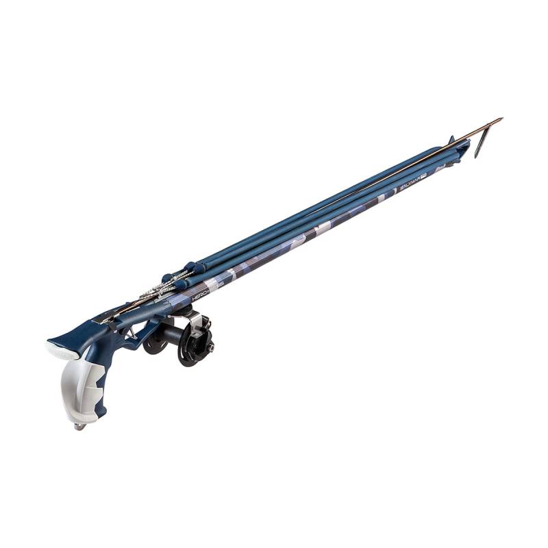 Kusza Salvimar Hero Storm z szpulą wykonana jest z zakamuflowanego niebieskiego, poddanego trwałej sublimacji, stopu aluminium klasy lotniczej z eliptyczną lufą. Kusza ma teflonową prowadnicę wału i powiększony profil dla lepszego hydrostatycznego wykończenia.
