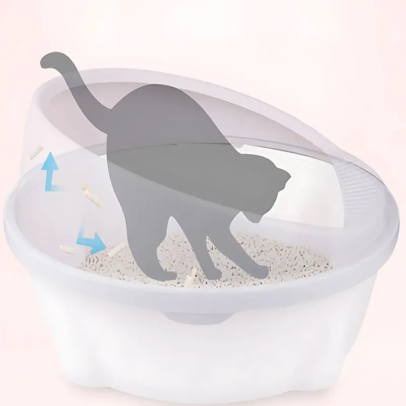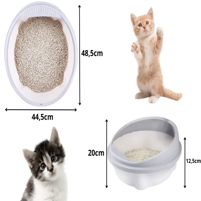 Owalna forma zapewnia wygodę podczas użytkowania, a optymalne wymiary sprawiają, że kuweta nadaje się zarówno dla małych, jak i większych kotów. Otwarta konstrukcja pozwala kotu na swobodny dostęp i eliminuje uczucie klaustrofobii.