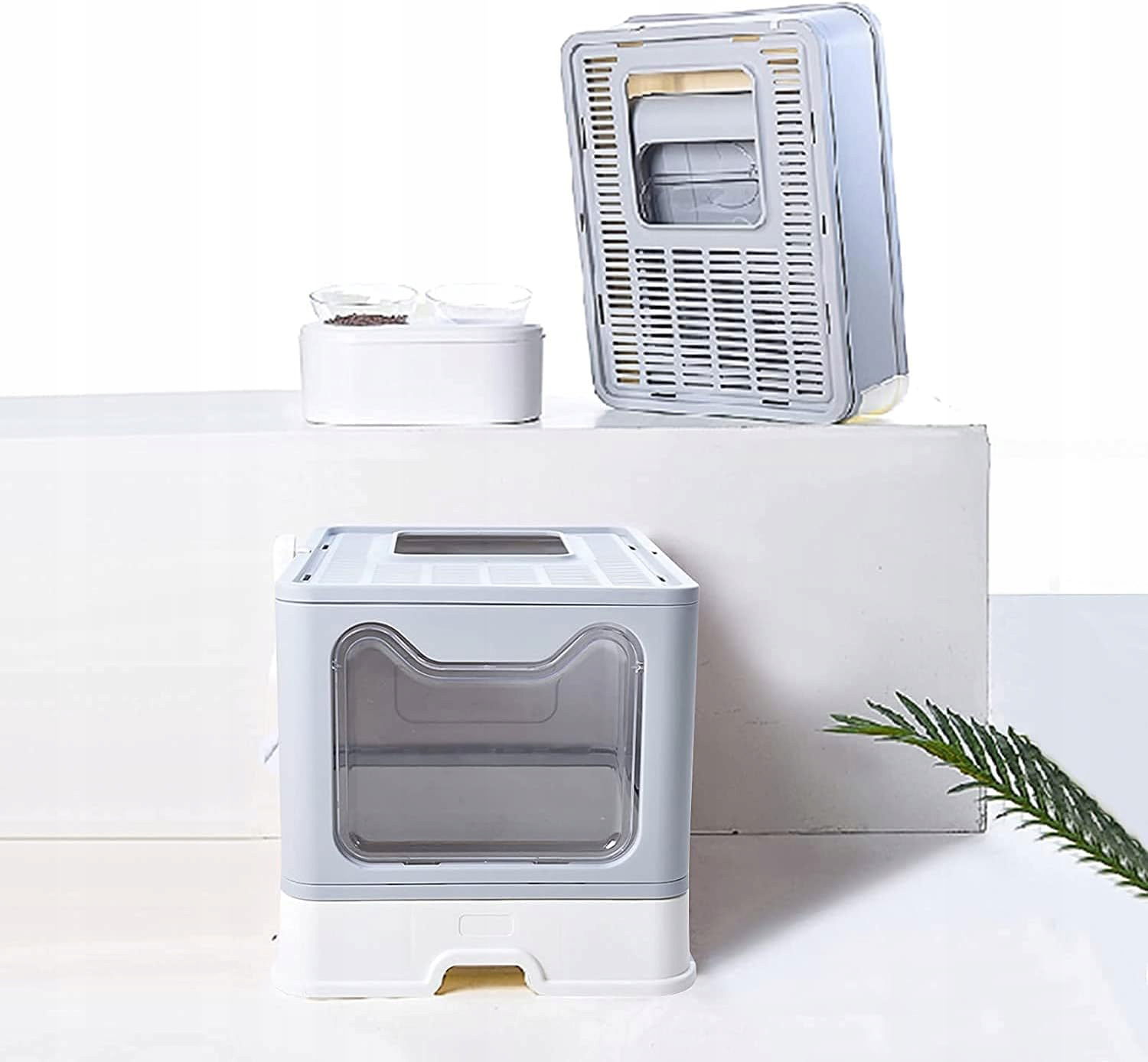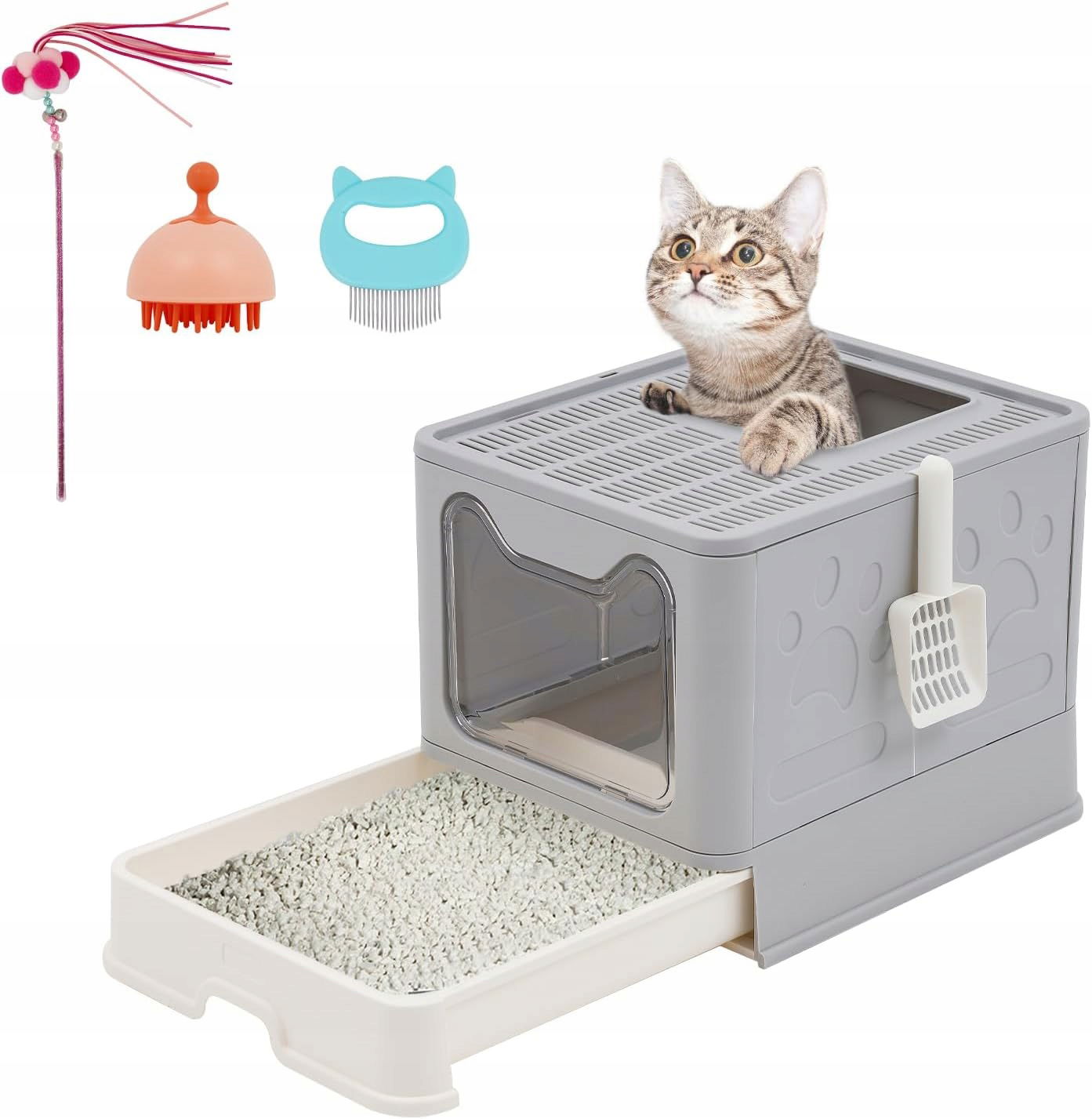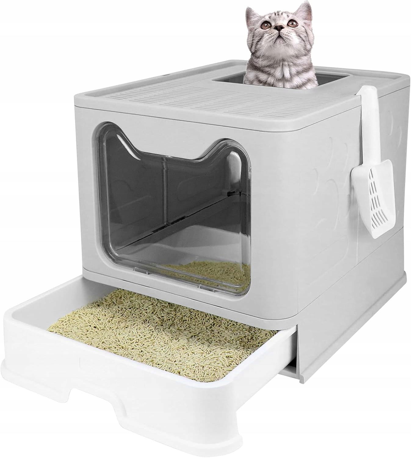 Kuweta dla kota, składana, z pokrywką, w zestawie z szufelką – duża pojemność, łatwa do czyszczenia.