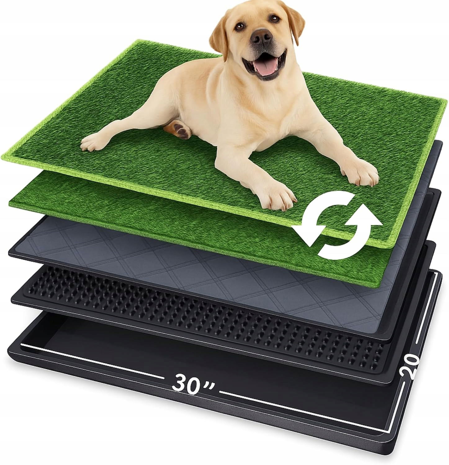 Konstrukcja składa się z trzech warstw: realistycznej maty z trawy, kratkowej tacy odwadniającej oraz wyjmowanej tacki ociekowej. Mocz przenika przez sztuczną trawę i kratkę bezpośrednio do dolnego pojemnika, co pozwala utrzymać powierzchnię suchą i higieniczną.