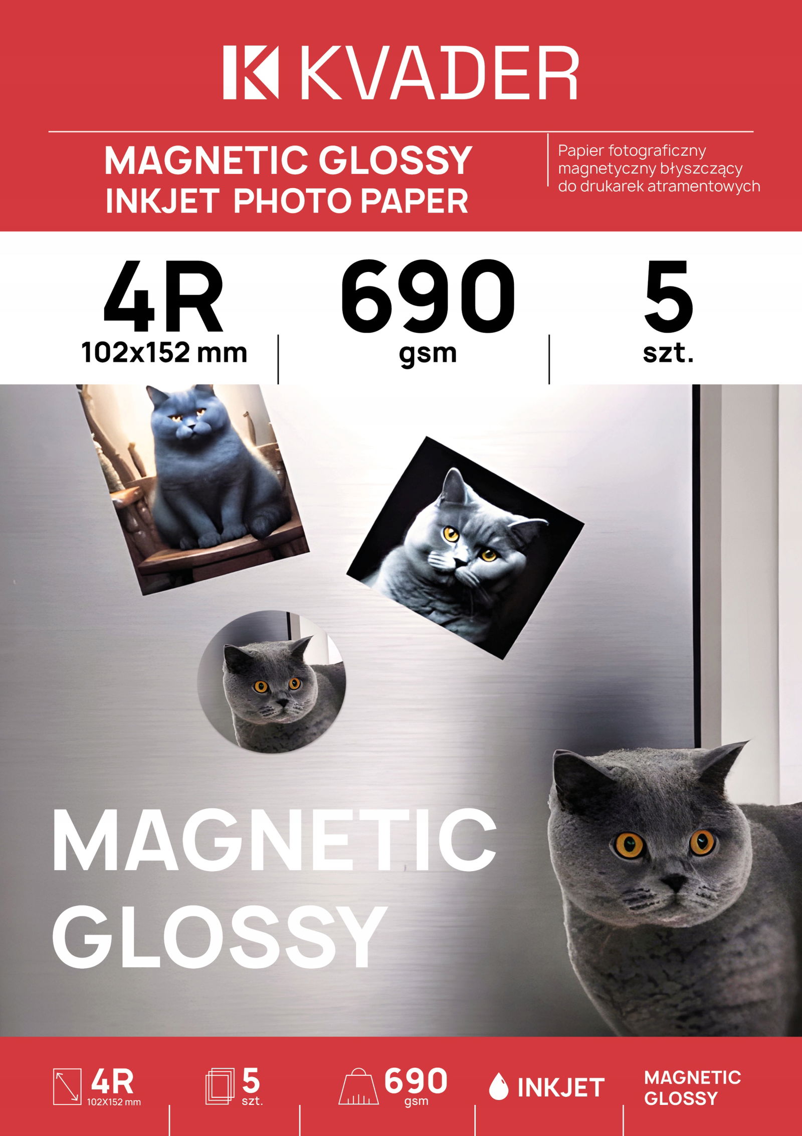 KVADER Papier magnetyczny fotograficzny błyszczący 4R (102x152mm) 690g 5szt