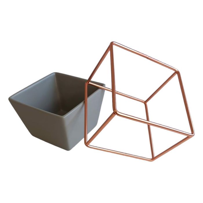 Kwadratowa doniczka/osonka w ozdobnym stelazu