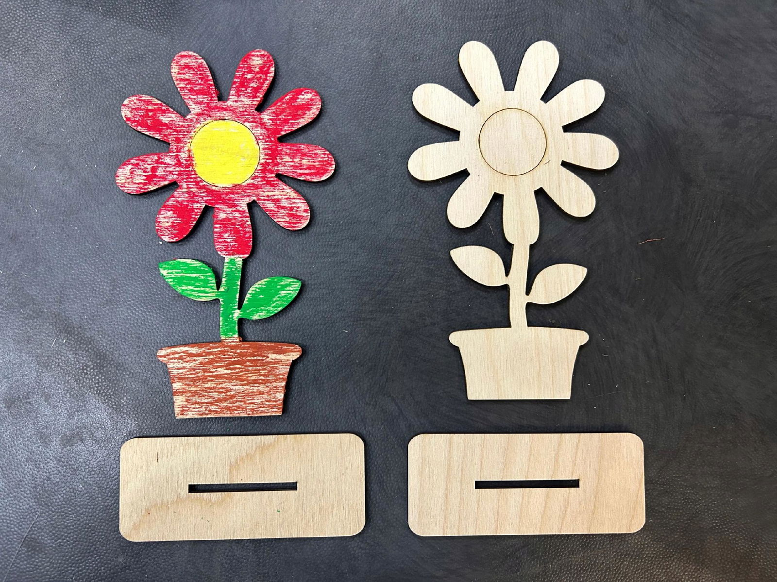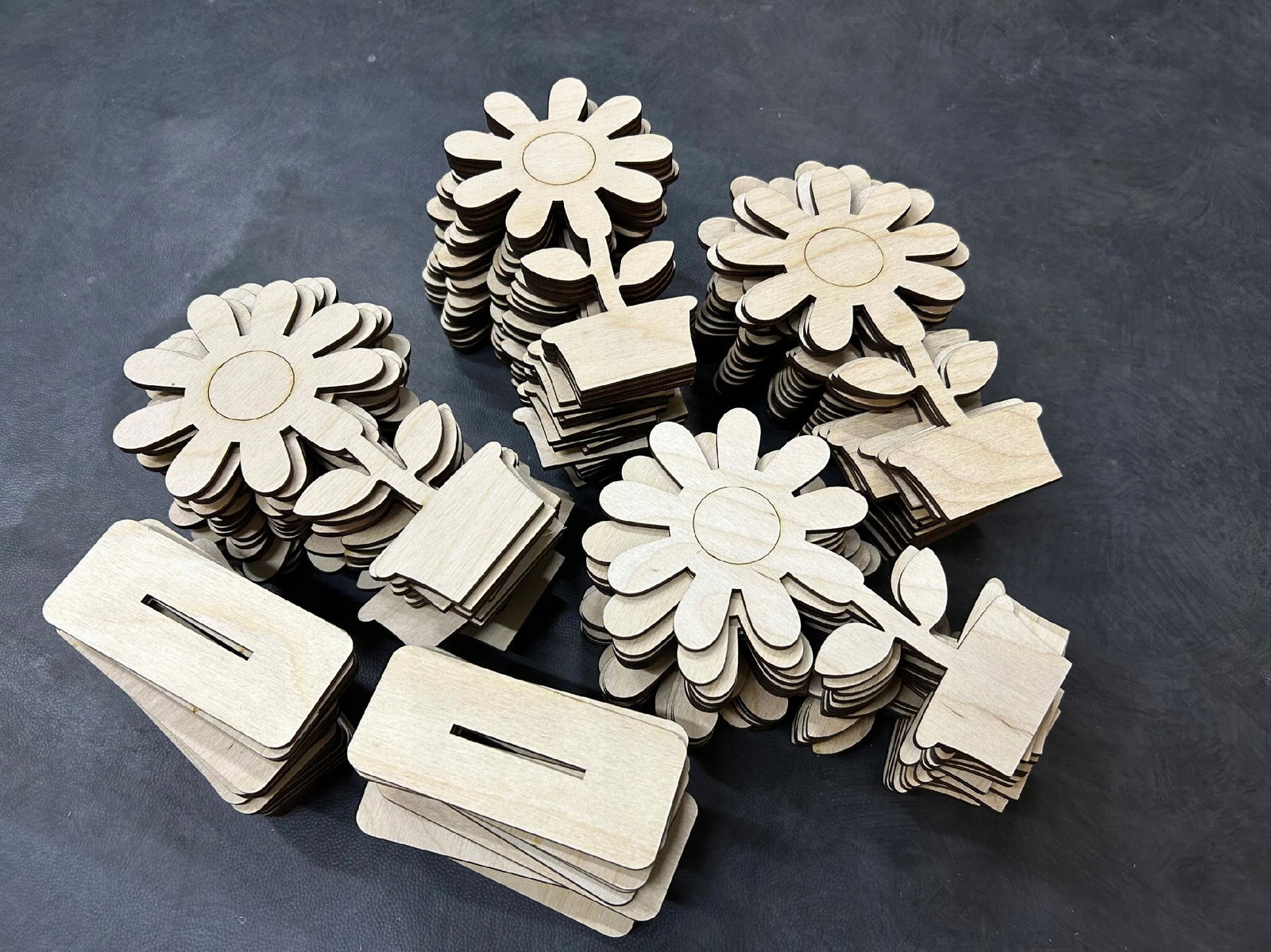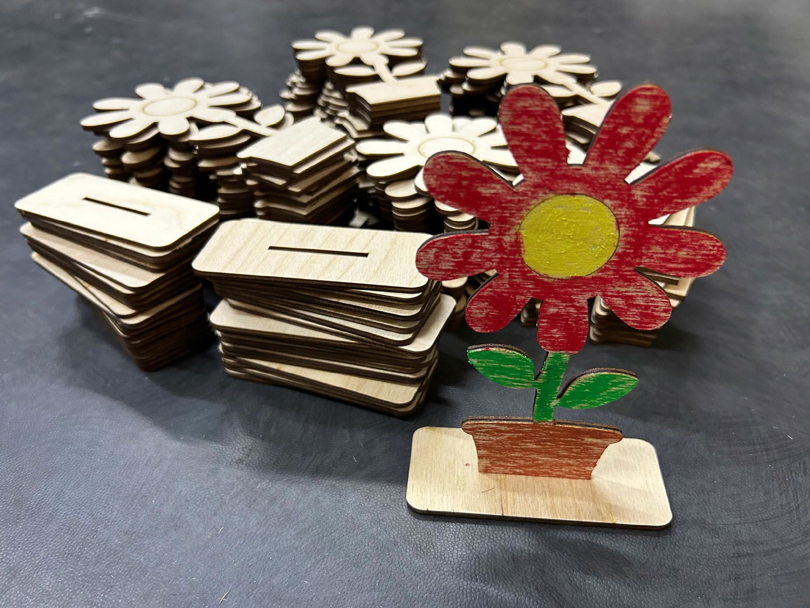 Drewniane kwiaty wykonana jest ze sklejki o grubości 3 mm.