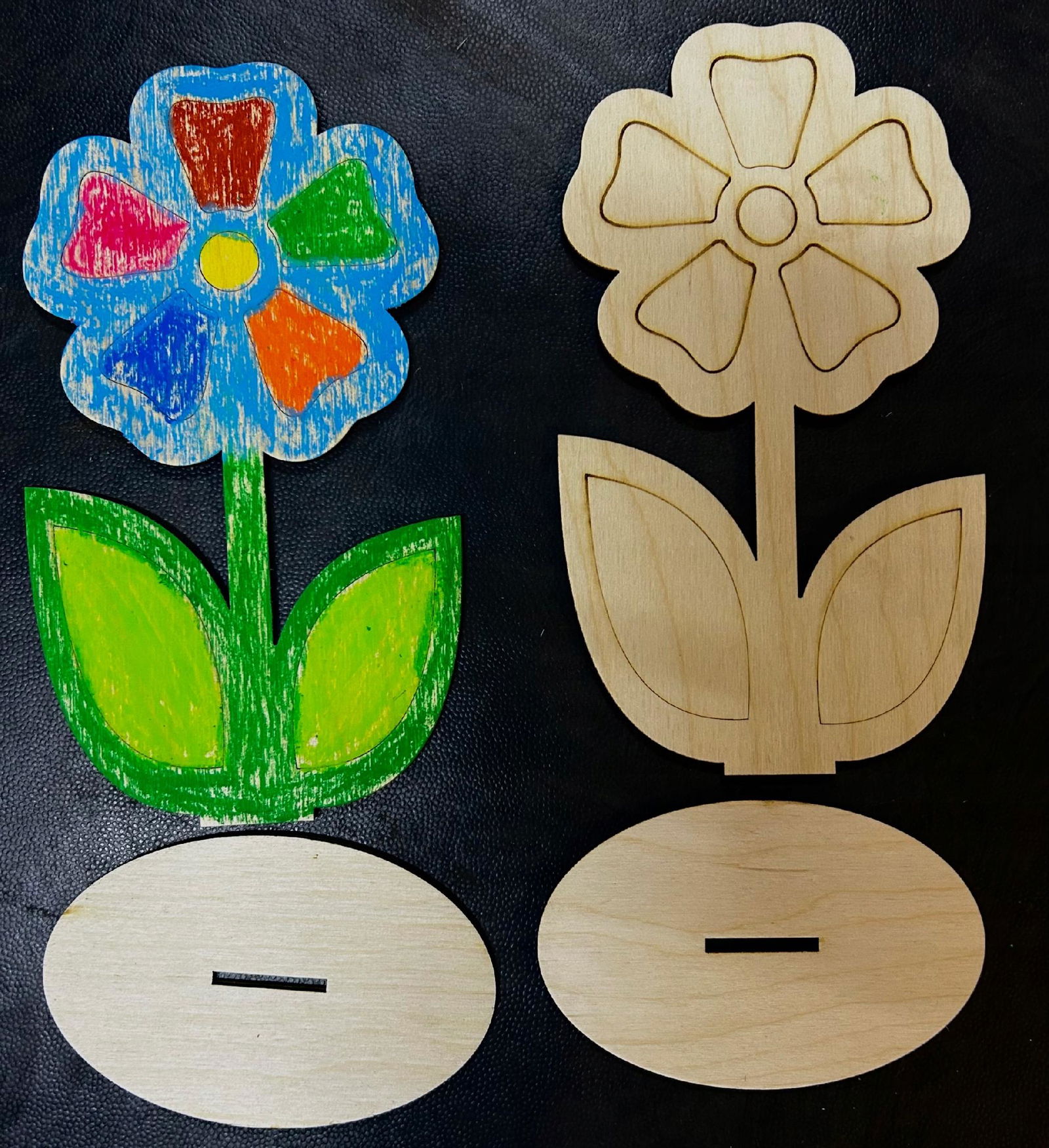 Drewniane kwiaty wykonana jest ze sklejki o grubości 3 mm.