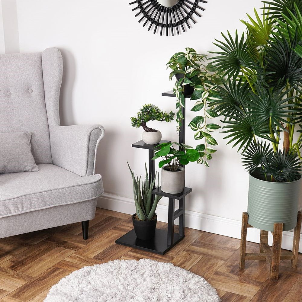 EFEKTOWNY - Czteropiętrowy kwietnik, który pozwoli na czterech różnych poziomach przechowywać doniczki lub dekoracje. Kwietnik ma wymiary zewnętrzne: 36,5 x 32 x 84 cm. Maksymalne obciążenie kwietnika wynosi 15 kg (po 5 kg na każdą półkę), nie wliczając podstawy, na której również można postawić donicę. Nada wyjątkowego charakteru każdemu wnętrzu.