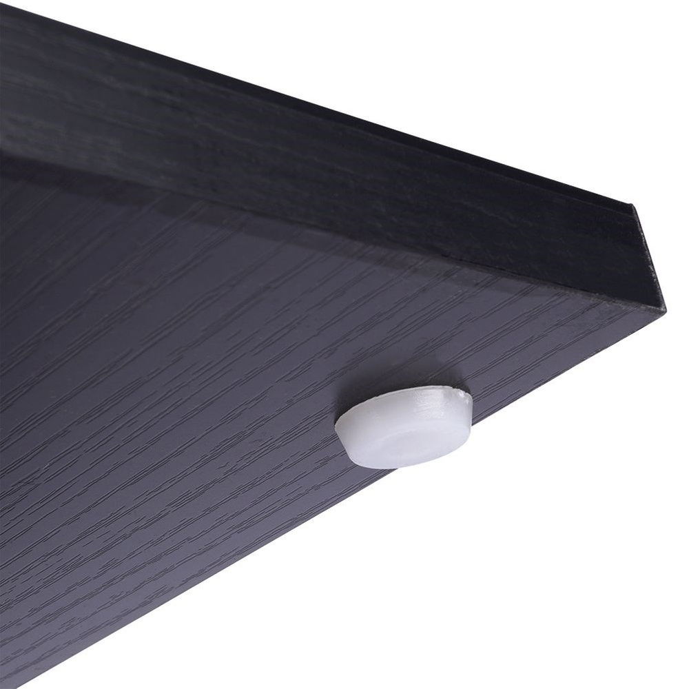 WYTRZYMAŁY - Wykonany z metalu w kolorze czarnym, a półki wykonane z wysokiej jakości płyty MDF o strukturze naturalnego drewna w czarnym kolorze.