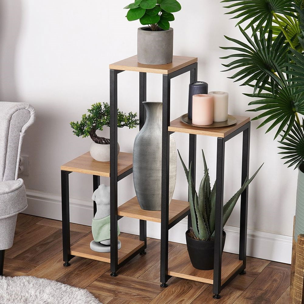 EFEKTOWNY - Stylowy kwietnik w formie wielopoziomowej kaskady, która posiada sześć miejsc na pięciu różnych poziomach do postawienia doniczek lub dekoracji. Kwietnik ma wymiary zewnętrzne: 62 x 24 x 80 cm. Maksymalne obciążenie kwietnika wynosi 60 kg. Nada wyjątkowego charakteru każdemu wnętrzu.
