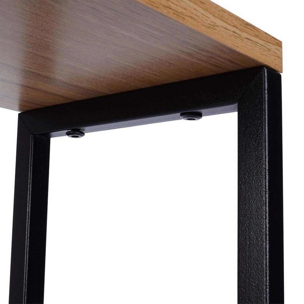 WYTRZYMAŁY - Wykonany z metalu w kolorze czarnym, a półki wykonane z wysokiej jakości płyty MDF o strukturze naturalnego drewna.