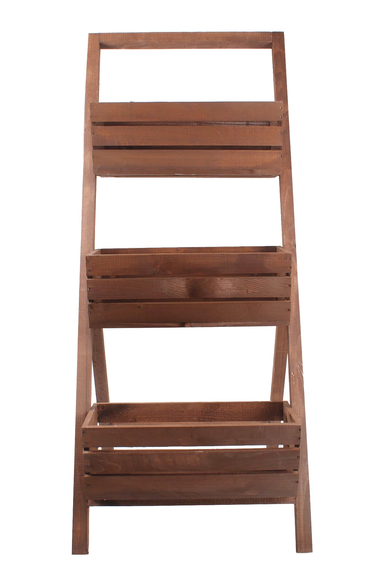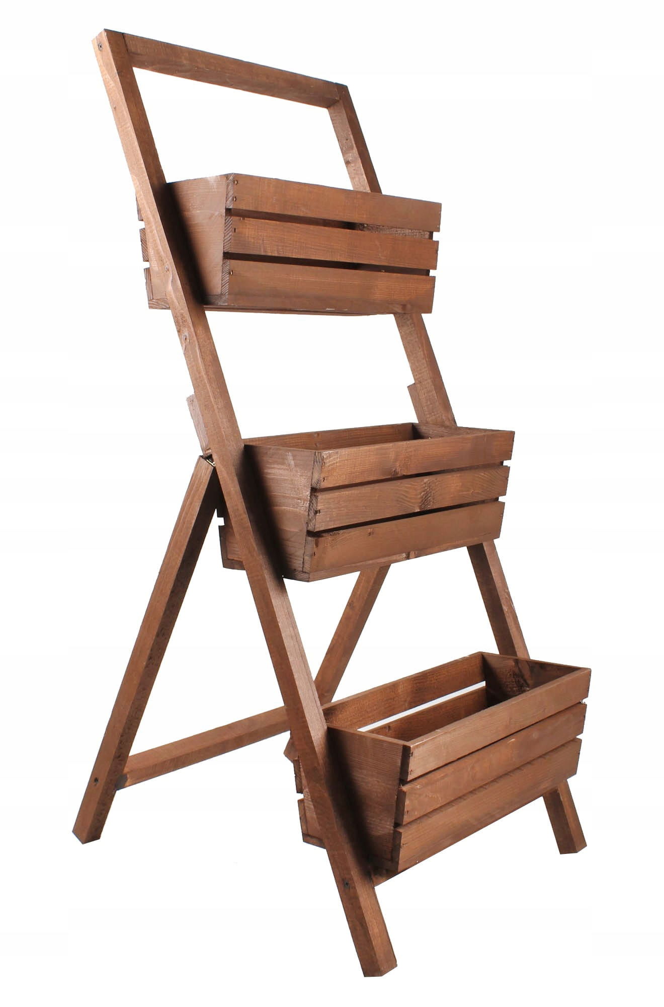 BRĄZOWY DREWNIANY KWIETNIK STOJĄCY NA TRZY BALKONÓWKI 46x58x105 cm