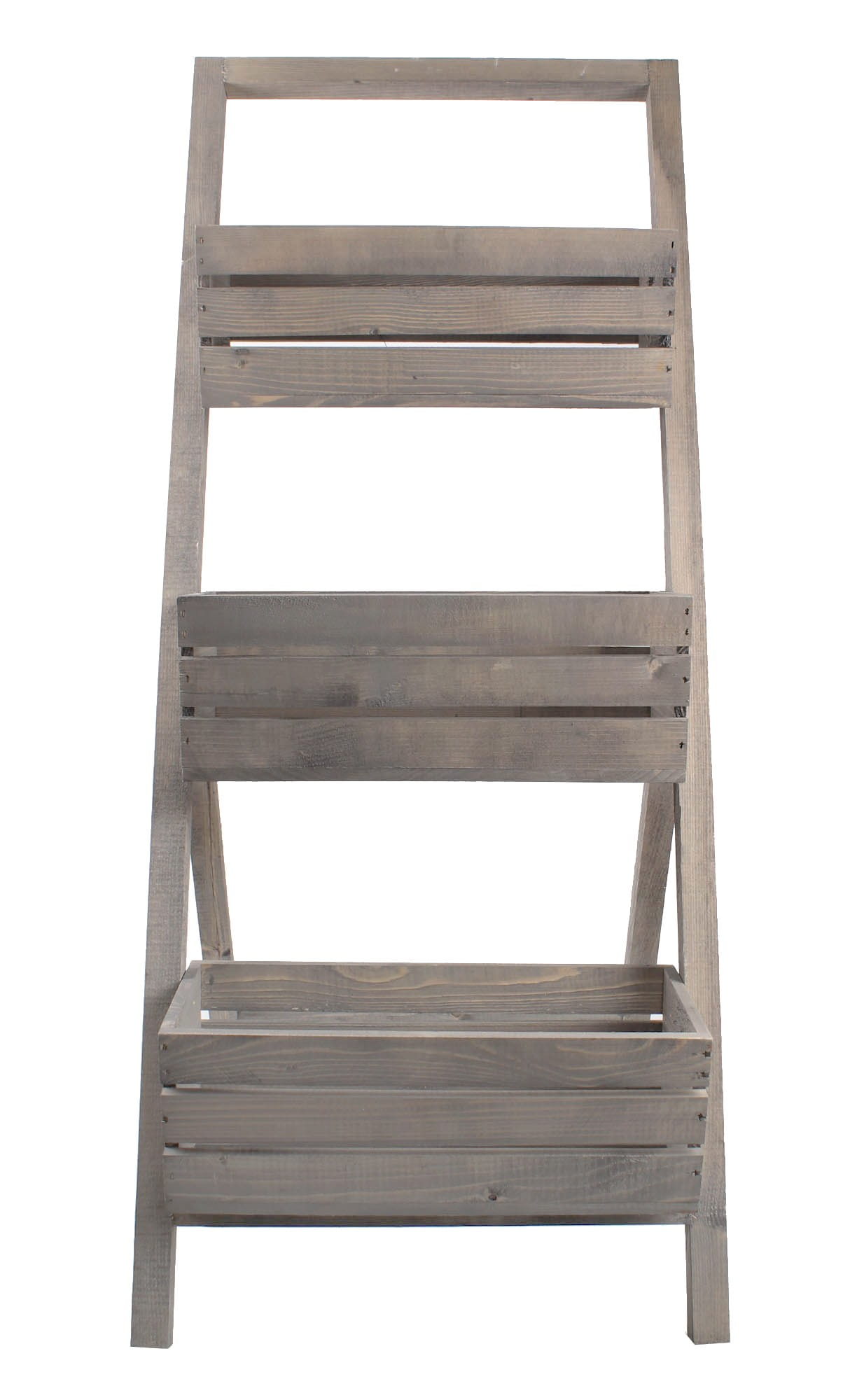 SZARY DREWNIANY KWIETNIK STOJĄCY NA TRZY BALKONÓWKI 46x58x105 cm