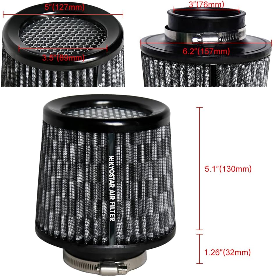 Kyostar Uniwersalny filtr stożkowy dolotu powietrza o średnicy 76 mm Tuning