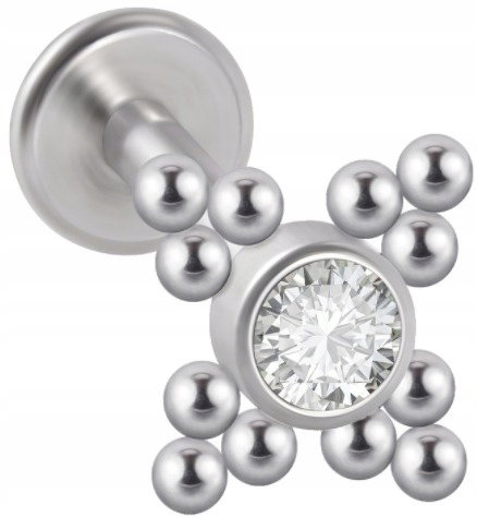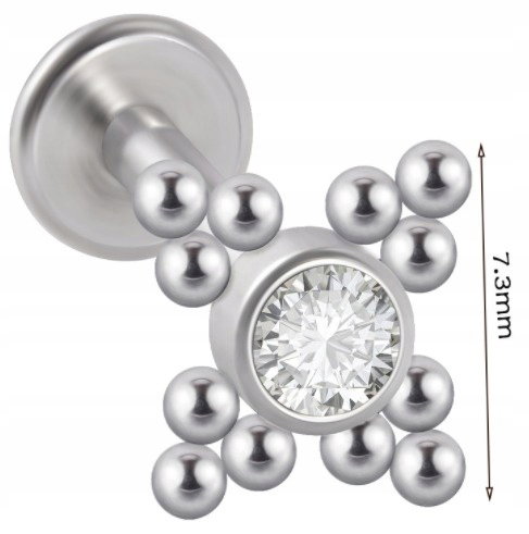 LABRET Śliczna Cyrkonia z Kuleczkami SS316L 1,2/6