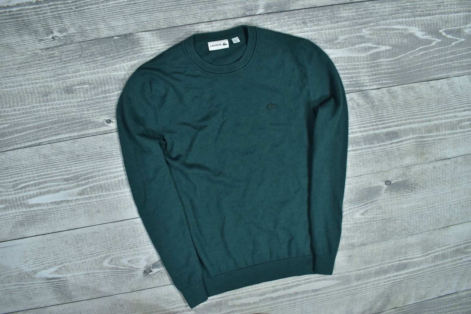 LACOSTE Wełniany Zielony Sweter Męski Pullover M