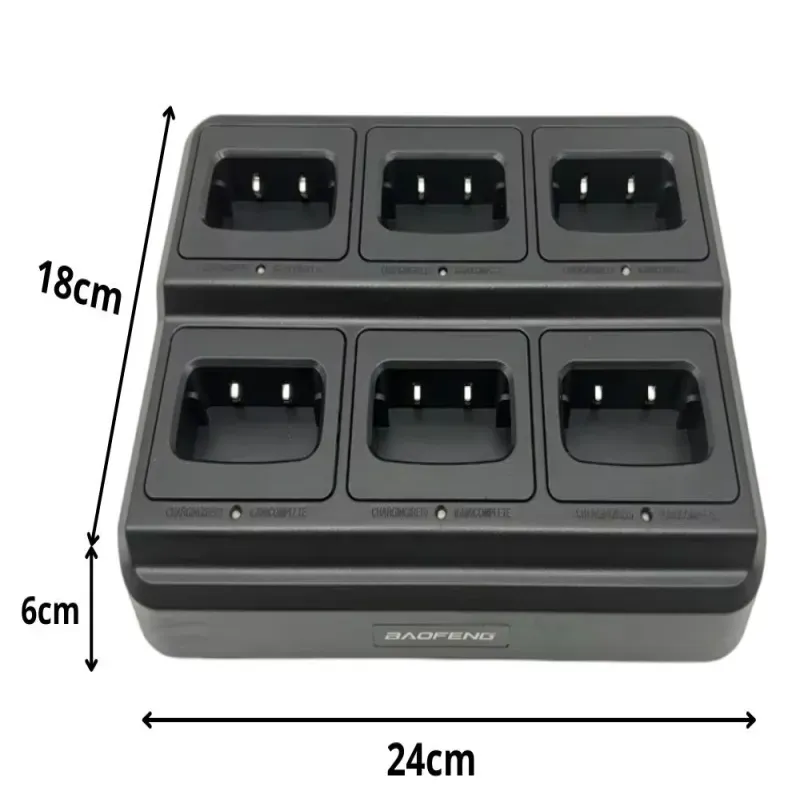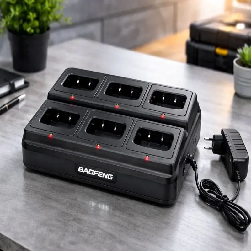 Stacja dokująca Baofeng pozwala na jednoczesne ładowanie aż 6 krótkofalówek, co znacząco usprawnia organizację pracy. Idealne rozwiązanie dla zespołów, firm ochroniarskich czy ekip budowlanych. Koniec z plątaniną kabli i osobnymi ładowarkami.
