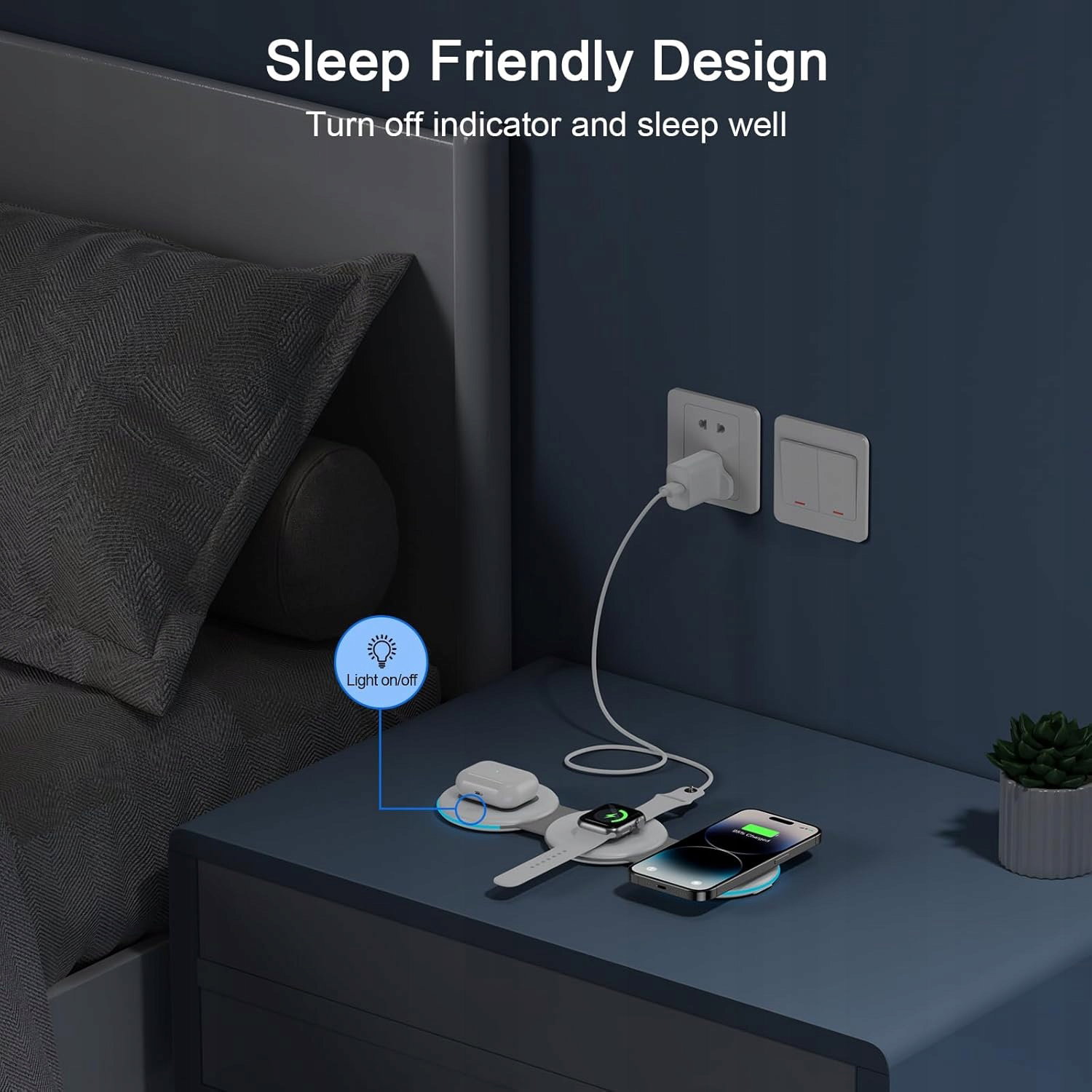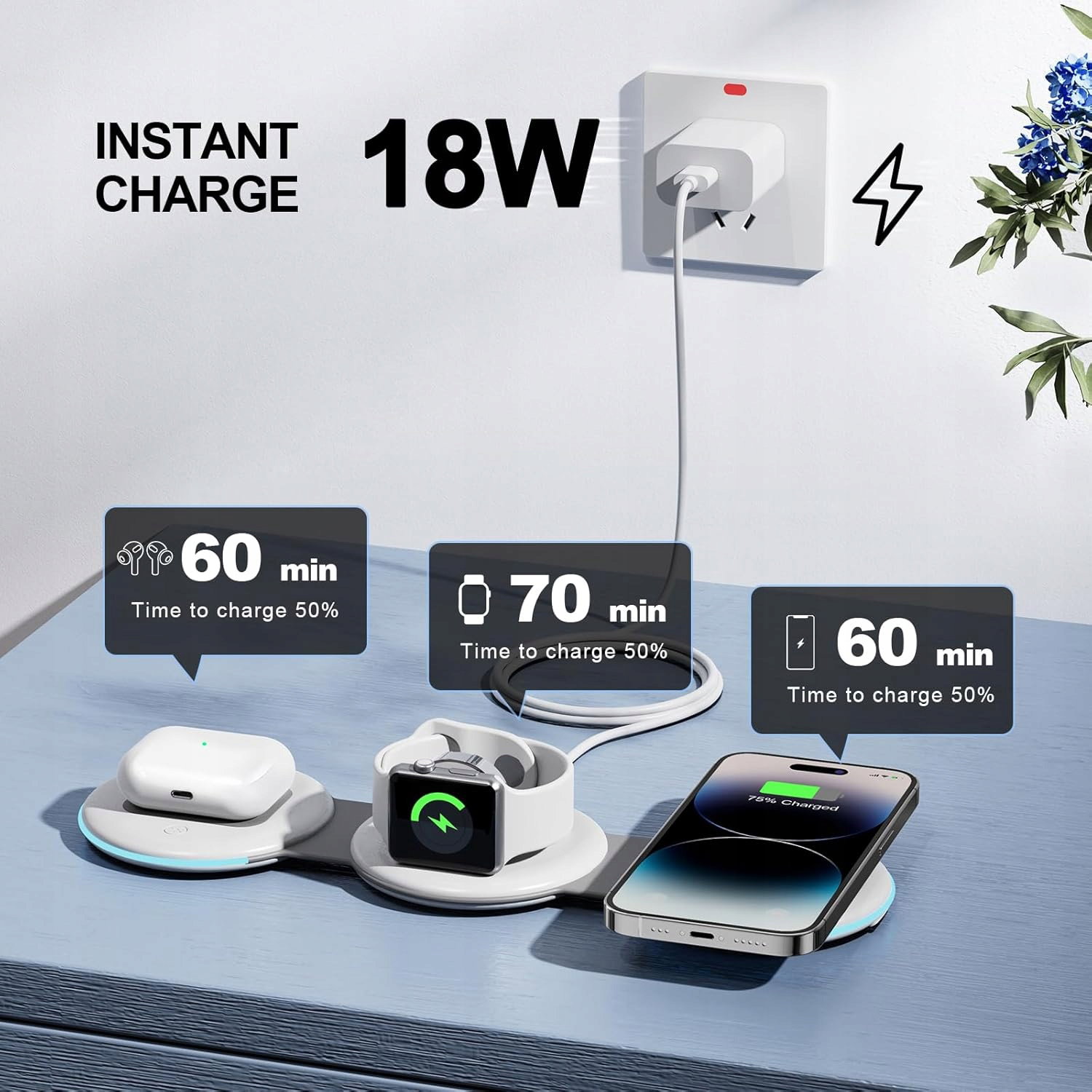 ✅ Dołączone części składowe: Składana bezprzewodowa stacja ładująca 3 w 1, kabel typu C, torba podróżna, zasilacz QC3.0
