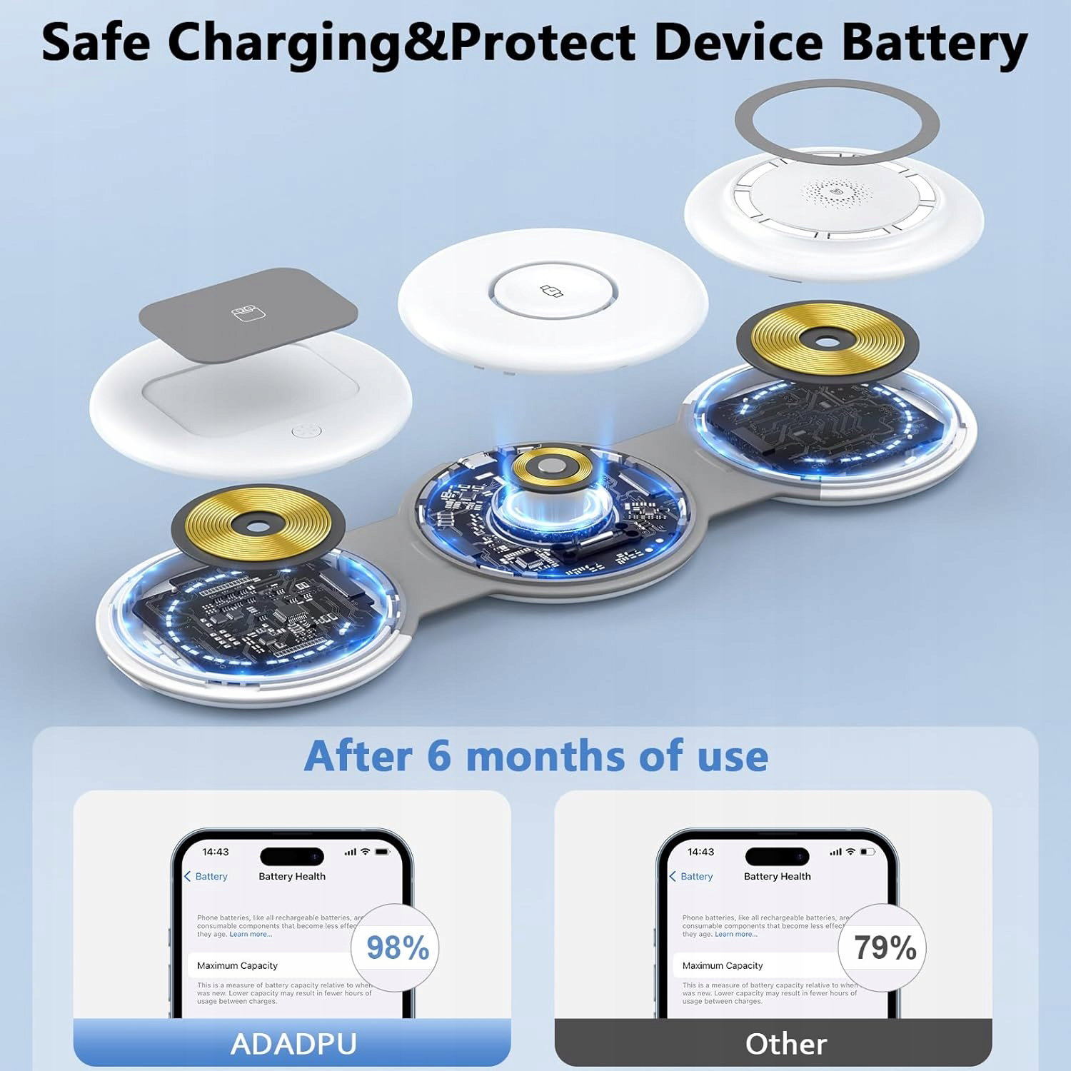 Ładowarka ADADPU Składana 3 w 1 kompatybilna z iPhone iWatch AirPods