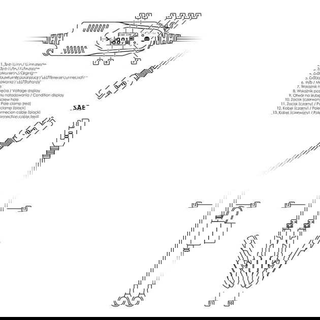 - rozłączany kabel wyposażony w szybko-złącze typu SAE, umożliwia dopasowanie ładowarki do własnych potrzeb, na wyposażeniu standardowym znajdują się końcówki z krokodylkami oraz terminale oczkowe,