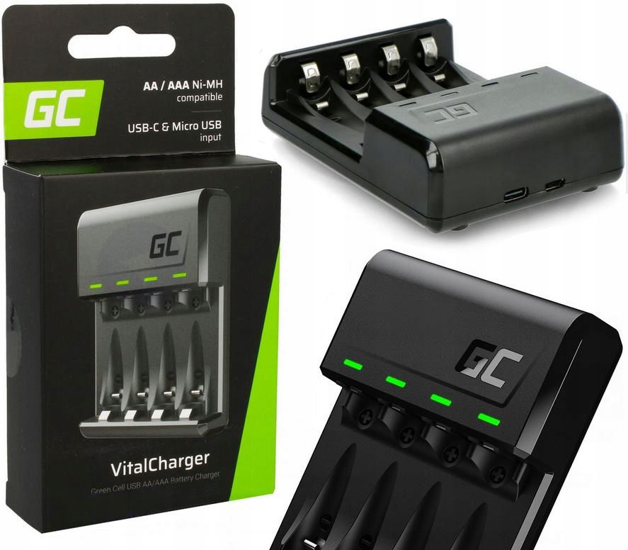- Ładowarka GC VitalCharger (USB-C / Micro USB) do akumulatorków AA / AAA - naładuj baterie gdziekolwiek jesteś poprzez port USB.