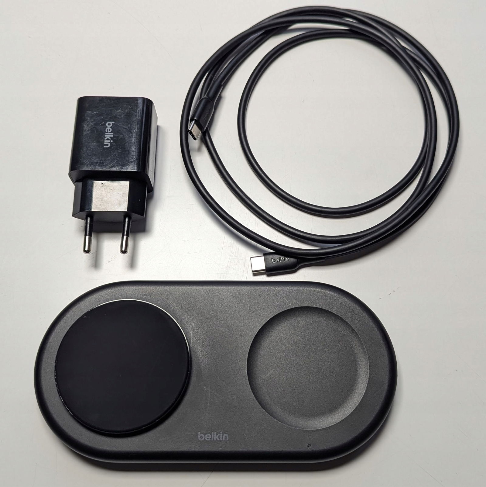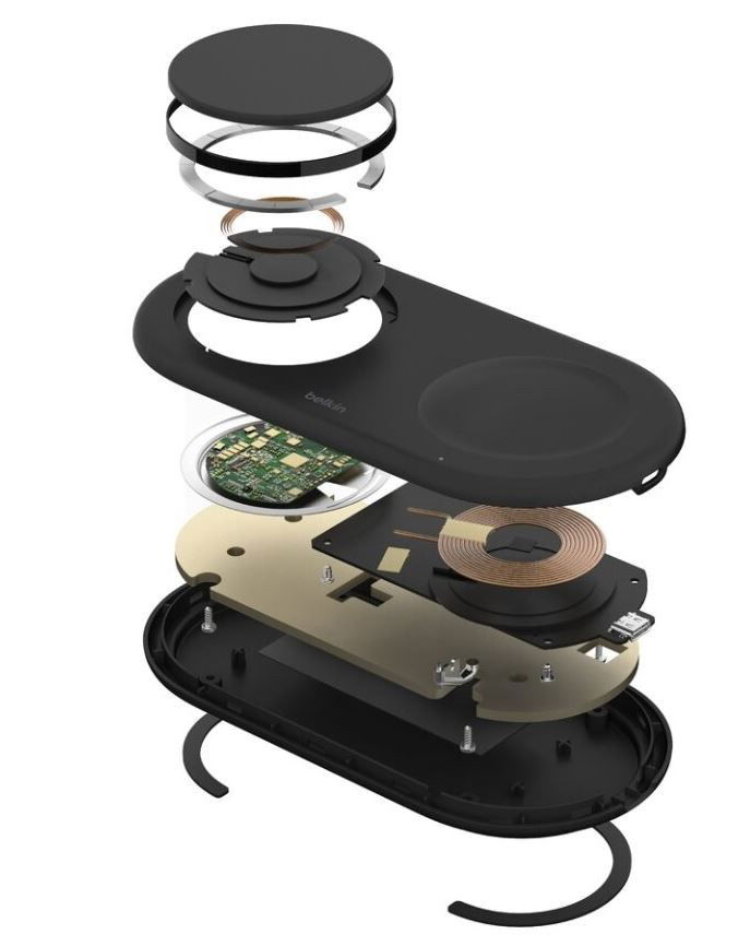 - Akcesoria w zestawie: Bezprzewodowa podkładka ładująca 2 w 1 z magnetyczną technologią Qi2 15 W, Kabel USB-C na USB-C o długości 1,5 m, Zasilacz USB-C,