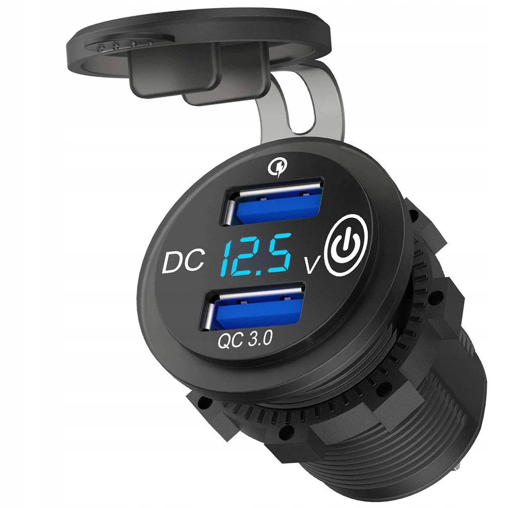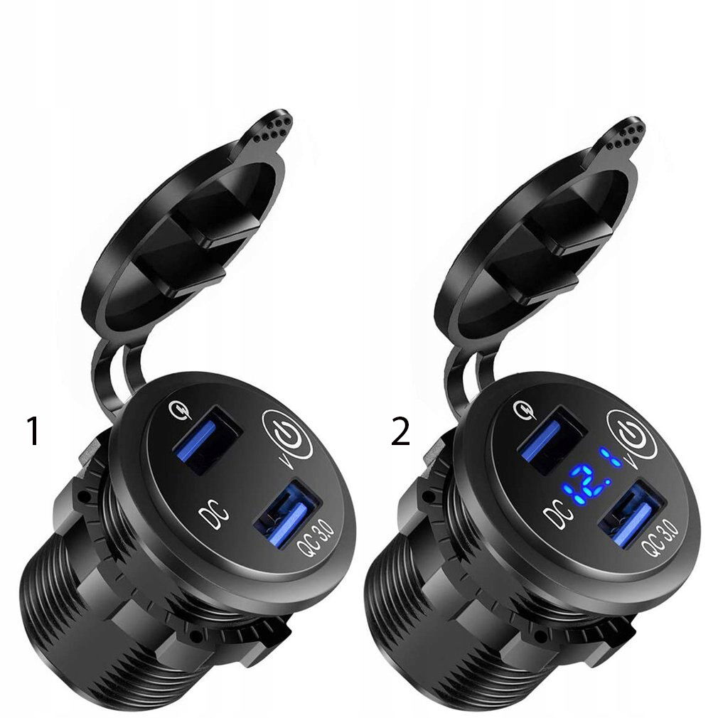 ŁADOWARKA MOTOCYKLOWA SAMOCHODOWA 2x USB Quick Charge Woltomierz ZABUDOWA