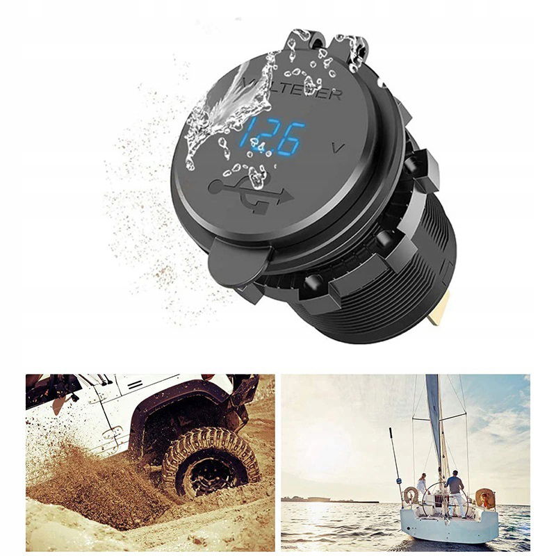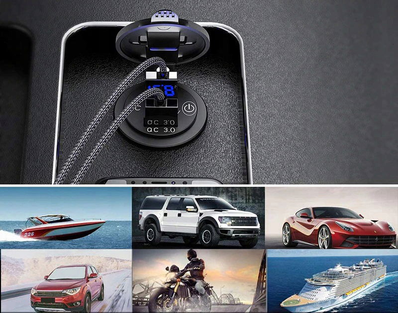 Ładowarka o kompaktowych wymiarach, z łatwością zamontujesz ją w większości samochodów. Praca w instalacjach DC 12V-24V, umożliwi montaż w: łodziach, łodziach morskich, motocyklach, ciężarówach, ATV, RV itp.