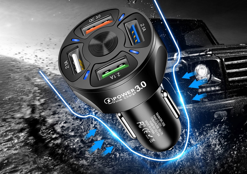 - Cztery porty USB: Ładuj wiele urządzeń naraz - Cztery porty USB pozwalają na ładowanie aż czterech urządzeń jednocześnie. To idealne rozwiązanie dla rodzin podróżujących razem lub osób, które korzystają z wielu urządzeń mobilnych.
