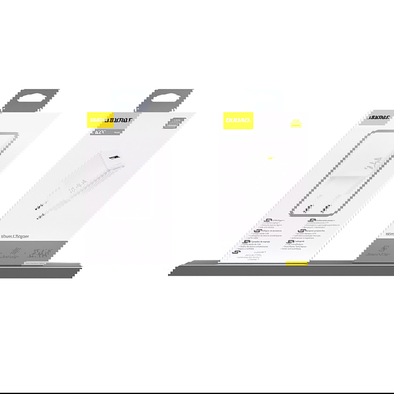 Kod produktu: 1027644Ładowarka Dudao A23 to niezawodne i wydajne rozwiązanie do codziennego ładowania Twoich urządzeń. Wyposażona w pojedynczy port USB-A oraz inteligentny chip, zapewnia optymalne dopasowanie mocy do podłączonych sprzętów. Jej kompaktowa konstrukcja oraz antypoślizgowa faktura sprawiają, że jest wygodna w użytkowaniu, a jednocześnie bezpieczna i niezawodna. Idealnie sprawdzi się w domu oraz w podróży. Wybierz Dudao A23 i ciesz się szybkim oraz stabilnym ładowaniem!Szybkie ładowanie o mocy 2.4ADudao A23 dostarcza stabilną moc 2.4A, dzięki czemu Twoje urządzenia będą ładowały się szybciej i wydajniej.Inteligentny system ochronyWbudowany Smart Chip dostosowuje napięcie, chroniąc Twoje urządzenie przed przepięciami i przegrzaniem.Kompaktowy designMinimalistyczna konstrukcja sprawia, że ładowarka zajmuje niewiele miejsca i jest łatwa do przenoszenia.Antypoślizgowa fakturaSpecjalna powierzchnia zapobiega wyślizgiwaniu się z ręki, zapewniając komfort użytkowania.Uniwersalna kompatybilnośćMożesz ładować szeroką gamę urządzeń, co czyni ją wszechstronnym narzędziem w codziennym użytkowaniu.Najważniejsze cechy: