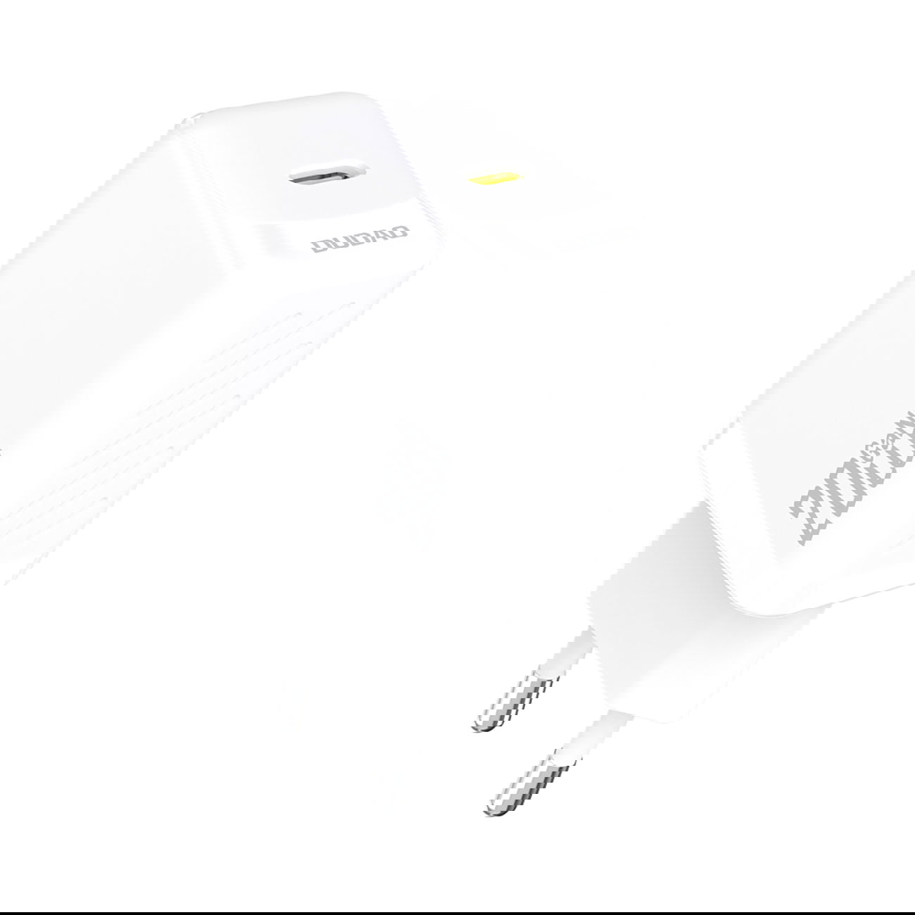 Kod produktu: 1027646Ładowarka Dudao A26 PD20W GaN USB-C to zaawansowane rozwiązanie, które pozwala na szybkie i bezpieczne ładowanie Twoich urządzeń. Dzięki technologii Power Delivery 20W oraz zastosowaniu materiału GaN, ładowarka oferuje wyjątkową wydajność przy zachowaniu kompaktowych rozmiarów. Jej złącze USB-C umożliwia błyskawiczne ładowanie wielu nowoczesnych urządzeń, takich jak smartfony, tablety czy inne akcesoria. Konstrukcja ładowarki jest również wyposażona w antypoślizgową fakturę, która zapewnia stabilność i wygodę użytkowania. Jeśli szukasz niezawodnego, małego urządzenia do codziennego ładowania, Dudao A26 to doskonały wybór, który sprosta Twoim wymaganiom w każdej sytuacji.Szybkie ładowanie Power Delivery 20WPower Delivery 20W to standard szybkiego ładowania, który znacząco skraca czas ładowania urządzeń. Z Ładowarką Dudao A26 błyskawicznie naładujesz swoje urządzenia, nawet te wymagające dużych mocy, jak nowoczesne smartfony czy tablety.Technologia GaN dla wyższej efektywnościŁadowarka Dudao A26 wykorzystuje technologię GaN, która pozwala na mniejsze rozmiary ładowarki oraz wyższą efektywność energetyczną. Dzięki temu ładowarka jest bardziej kompaktowa i nie przegrzewa się, co zwiększa jej trwałość.Bezpieczne ładowanie z ochroną przed przegrzaniem i przepięciamiŁadowarka jest wyposażona w nowoczesne mechanizmy ochronne, które zabezpieczają urządzenia przed przegrzaniem, przepięciami i zwarciami, zapewniając pełne bezpieczeństwo i niezawodność.Antypoślizgowa faktura zapewniająca stabilnośćDzięki specjalnej fakturze obudowy, ładowarka nie przesuwa się po powierzchni, co sprawia, że jest stabilna i bezpieczna, nawet w trakcie intensywnego użytkowania.Kompaktowe rozmiary idealne do podróżyDzięki niewielkim wymiarom, ładowarka Dudao A26 zmieści się w każdej torbie czy plecaku, co czyni ją idealnym rozwiązaniem do codziennego użytku i podróży. Zawsze będziesz mieć ją przy sobie, gotową do użycia.Najważniejsze cechy: