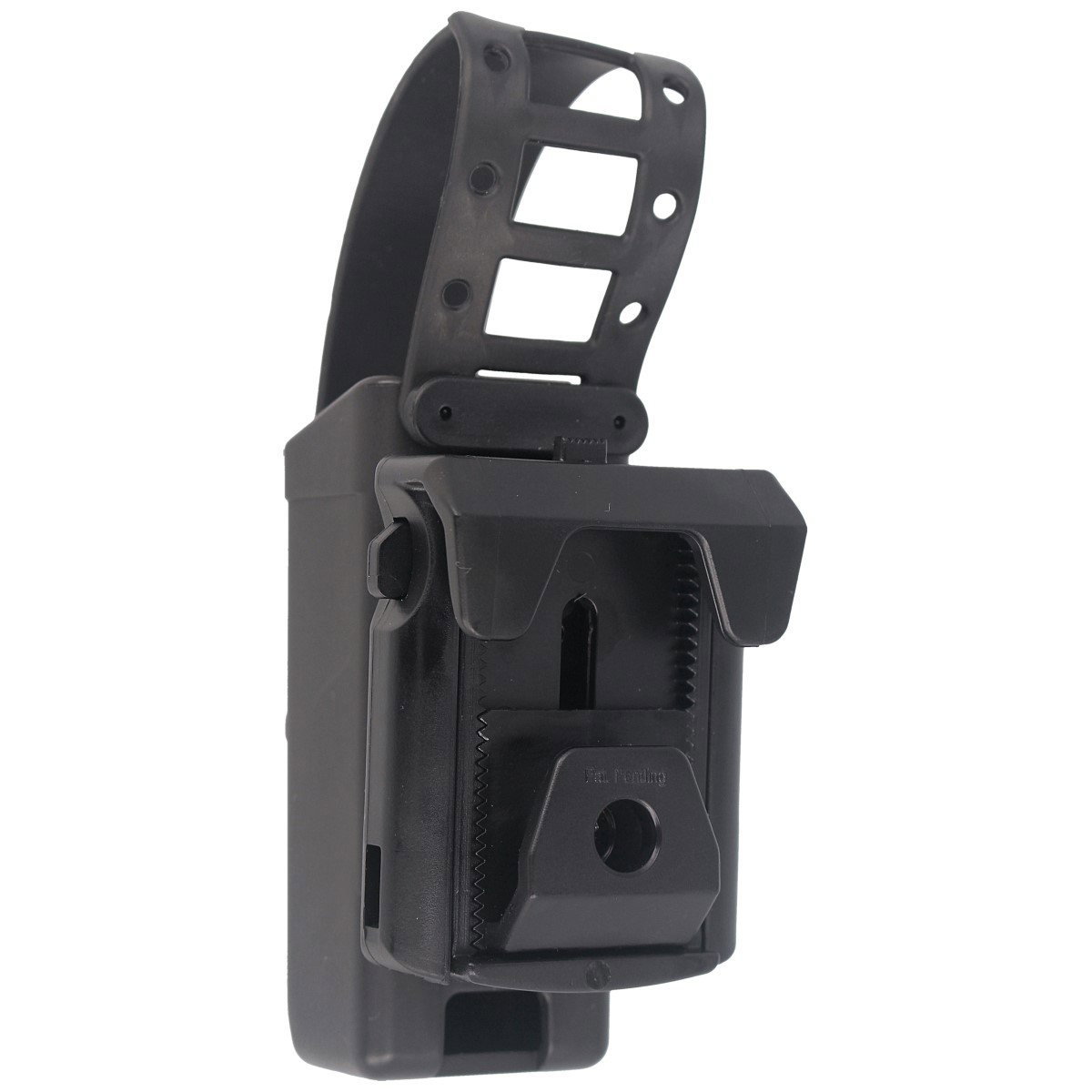 Dane techniczne:Numer produktu: MH-04-S BKNazwa: Holder with safety strap for double stack magazine 9 x19 Para / .40Kolor: BlackMateriał: PolymerWaga: 145.0 g / 5.11 ozRodzaj mocowania: UBC-01 (Roto 360°)