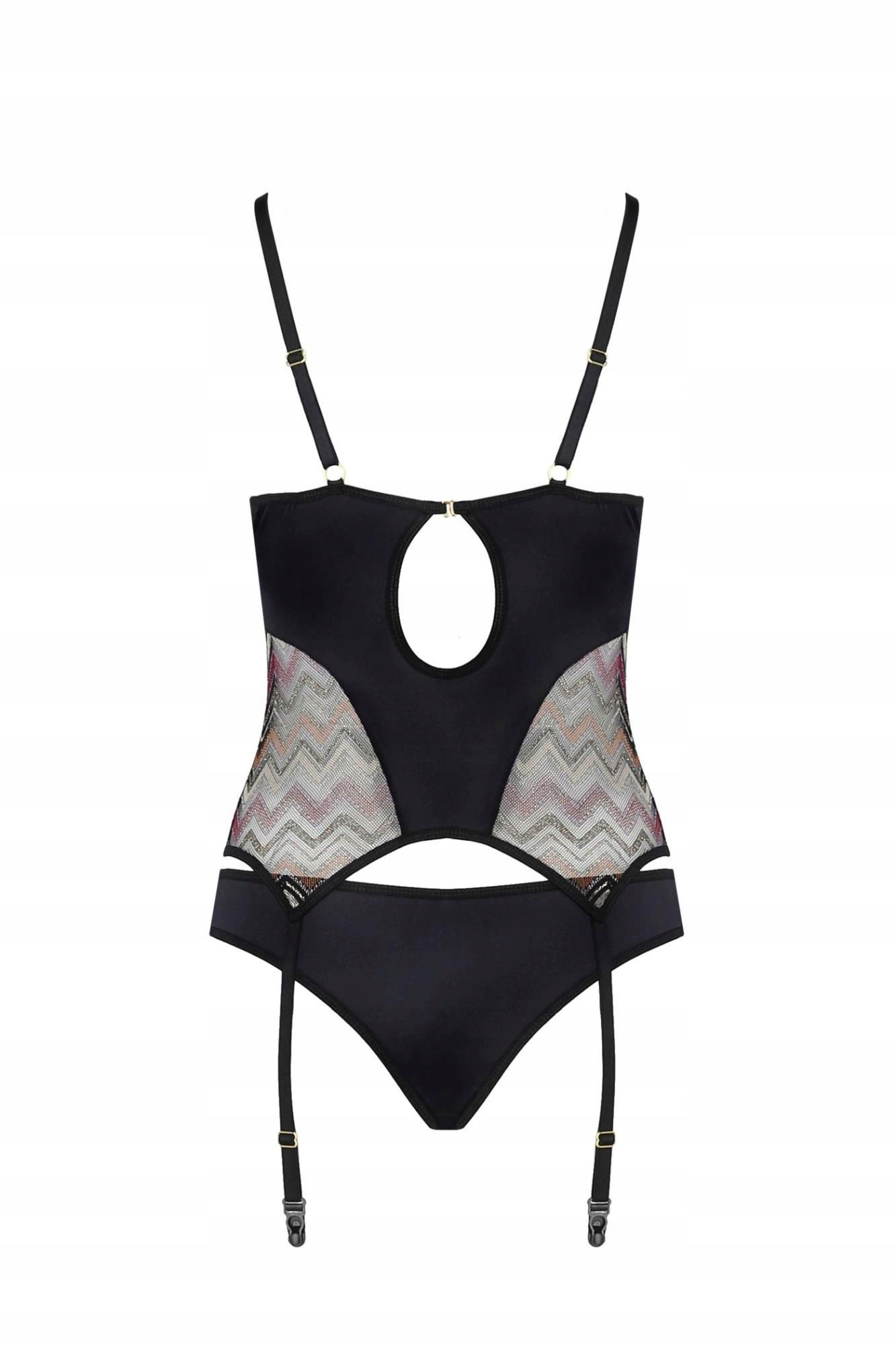 LAGERTA CORSET - Gorset Lagerta sprawdzi się idealnie dla kobiet lubiących połączenie bielizny z symetrycznym, fantazyjnym wzorem, nietypowym krojem i ciekawą kolorystyką. Odpowiednio skrojone materiały i głęboki dekolt eksponują kobiece walory oraz nadają sylwetce pożądany, smukły kształt.