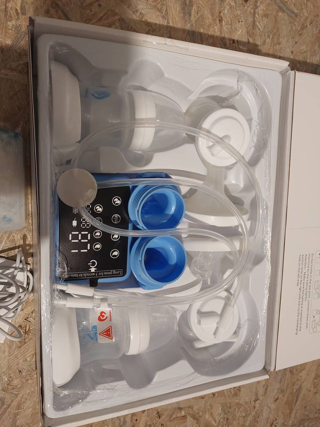 Wbudowany akumulator – praktyczny w domu i w podróży, w zestawie ładowarka USB i akumulator litowo-jonowy 2200 mAh o dużej pojemności (wejście: 5 V/1 A). Pompę do mleka można bez problemu naładować za pomocą powerbanku, laptopa, ładowarki lub ładowarki samochodowej
