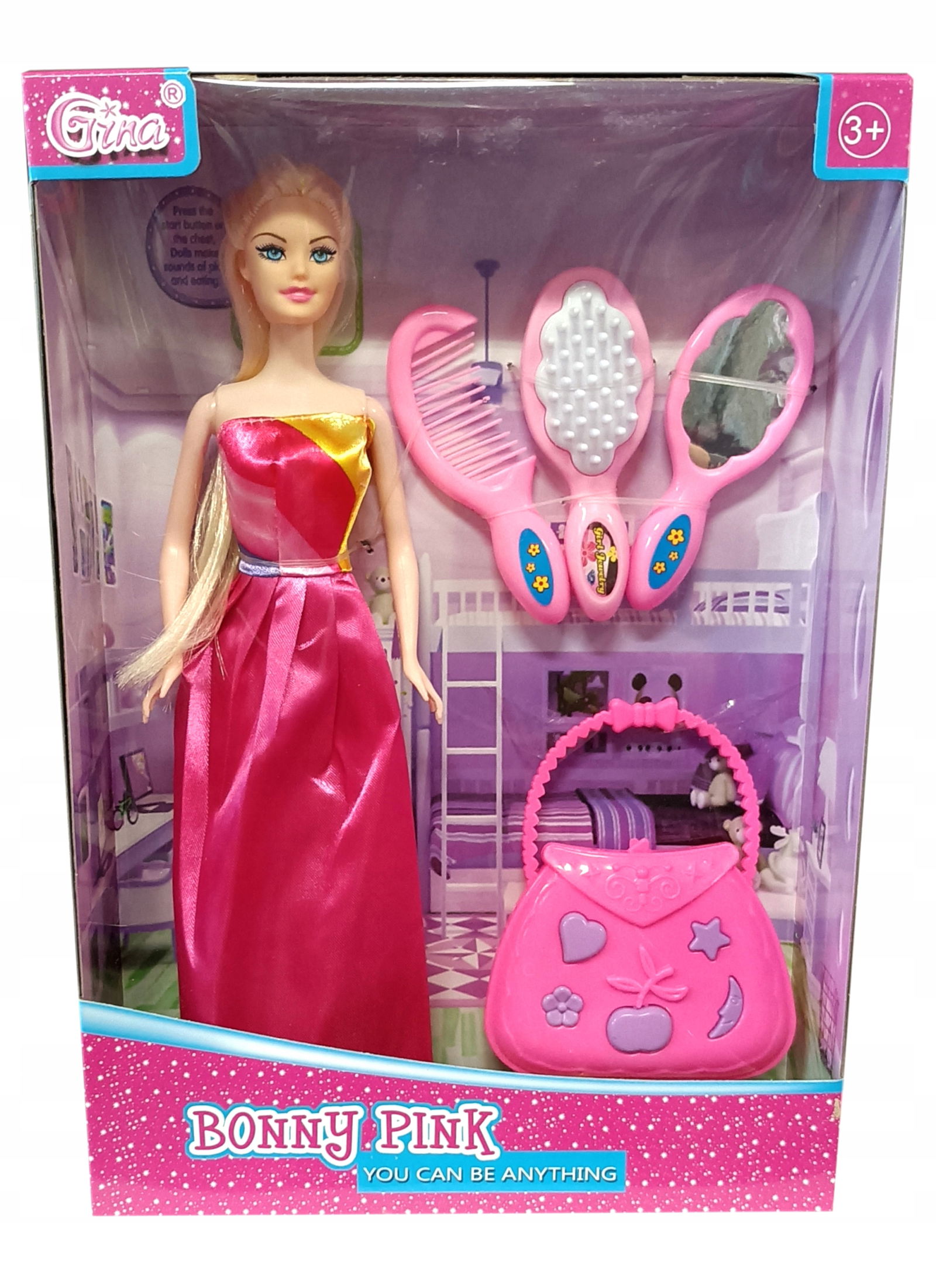 Ta urocza lalka z serii „Bonny Pink – You Can Be Anything” to doskonała propozycja dla dzieci od 3. roku życia. Lalka ubrana jest w elegancką, połyskującą suknię w odcieniach różu i żółci, która przyciąga wzrok i idealnie pasuje do każdej bajkowej okazji. Jej długie blond włosy można czesać dołączonymi akcesoriami – różowym grzebieniem, szczotką i lusterkiem.