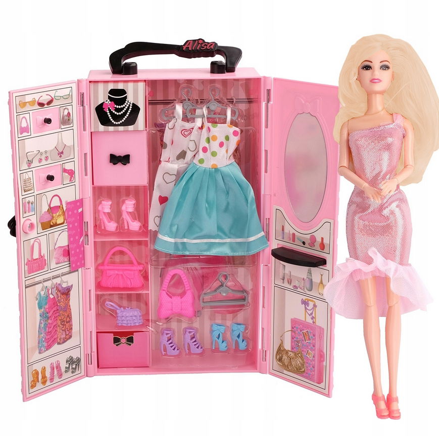 Dzięki temu każde akcesoria będą miały swoje miejsce i nic się nie zgubi podczas zabawy. Szafę łatwo można złożyć i rozłożyć do zabawy - wystarczy tylko podnieść haczyk i otworzyć drzwiczki.