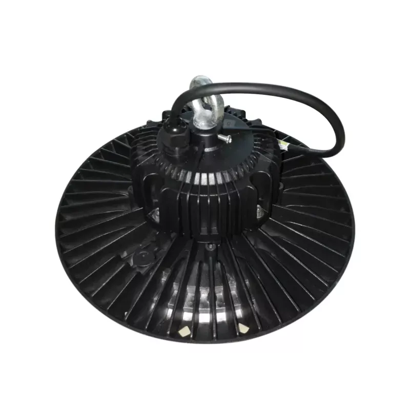 Lampa przemysłowa 100W/230V strumień świetlny 12000lm, wysokość 16.5cm, okrągła - 260cm średnicy, do pomieszczeń produkcyjnych, magazynowych i warsztatowych. Masywna, gęsto użebrowana obudowa wykonana z aluminium skutecznie odprowadza ciepło emitowane przez diody LED, co znacząco wpływa na wydłużenie żywotności lampy.