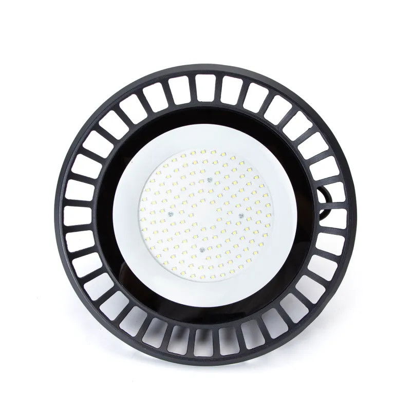 Lampa przemysłowa 100W/230V strumień świetlny 12000lm biała zimna 6500K. Okrągła - 29cm średnicy, wysokość - 12cm. Przeznaczona do pomieszczeń produkcyjnych, magazynowych i warsztatowych. Masywna, gęsto użebrowana obudowa wykonana z aluminium skutecznie odprowadza ciepło emitowane przez diody LED, co znacząco wpływa na wydłużenie żywotności lampy.
