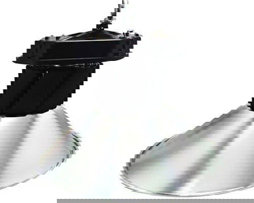 Lampa przemysłowa 150W/230V z aluminiowym kloszem, strumień świetlny 15000lm biała zimna 6500K. Średnica rozpraszającego klosza 50 cm, wysokość całkowita 42cm. Przeznaczona do pomieszczeń produkcyjnych, magazynowych i warsztatowych. Duży odbłyśnik zapewnia dobre rozproszenie światła. Masywny oksydowany radiator skutecznie odprowadza ciepło emitowane przez diody LED, co znacząco wpływa na wydłużenie żywotności lampy.