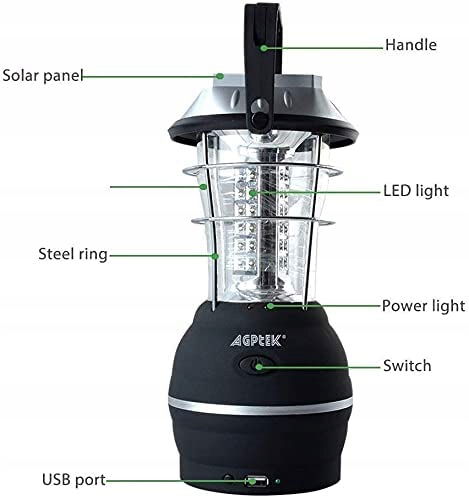 - Korba ręczna Dynamo Solar 36 Latarnia LED Outdoor Super Bright Camping Work Light. Ta energooszczędna latarnia została zaprojektowana z 36 diodami LED na czas pracy do 100 000 godzin.