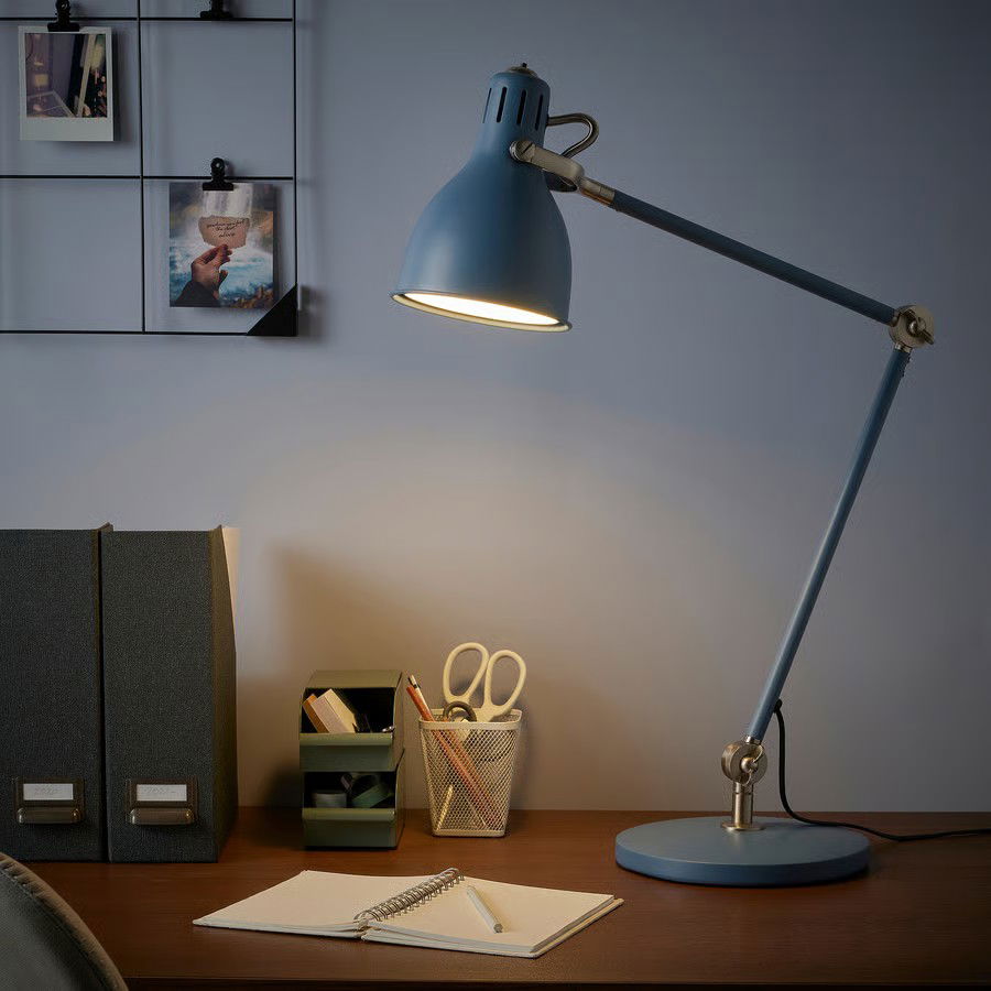 ARÖD to jedna z tych lamp, które nigdy nie wychodzą z mody. Jej design nawiązuje do tradycyjnych lamp kreślarskich, ale w tym konkretnym wydaniu przyciąga wzrok unikalnym, głębokim turkusowym kolorem, który ożywi każde biurko.