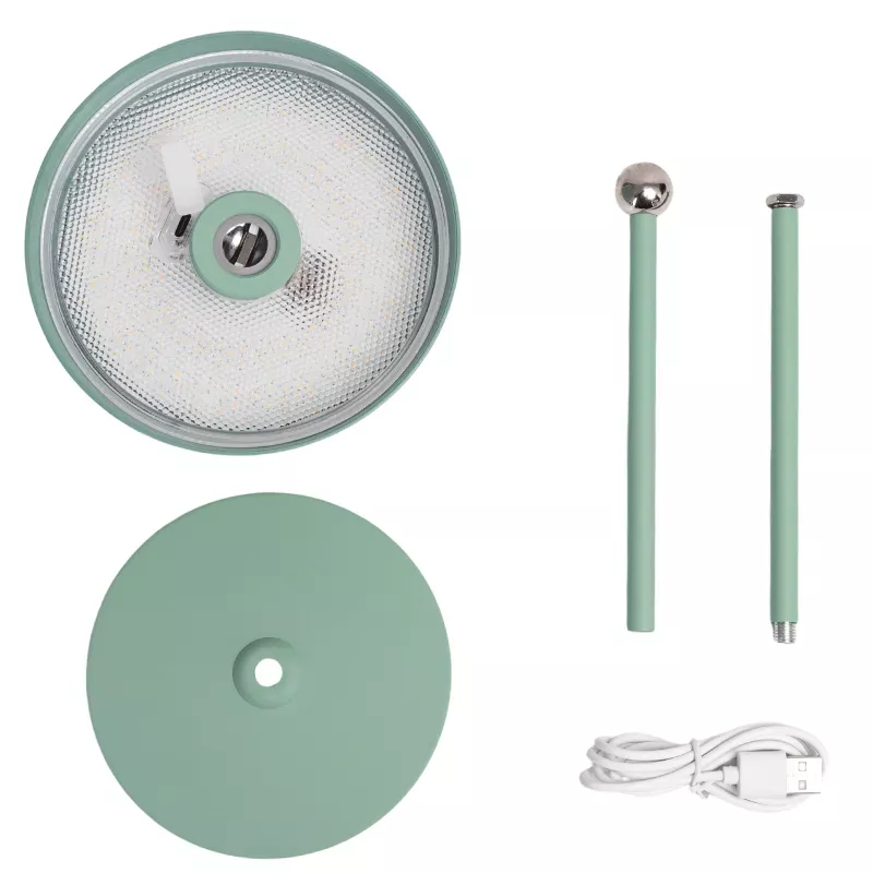 Światło ciepłe, neutralne lub zimne. W zestawie kabel ładujący o długości 1 m. Gruba podstawa zapobiegająca przewróceniu, minimalistyczny wygląd, stylowa dekoracja. Łagodne światło, przyjazne dla oczu i niemigoczące. Klosik lampy można obracać we wszystkich kierunkach, diamentowy wzór dyfuzora o dużej gęstości rozpraszająca światło, chroni oczy i zapobiegająca oślepianiu. Wbudowany akumulatory o dużej pojemności 1000mA zapewniają pracę do 40 godzin.