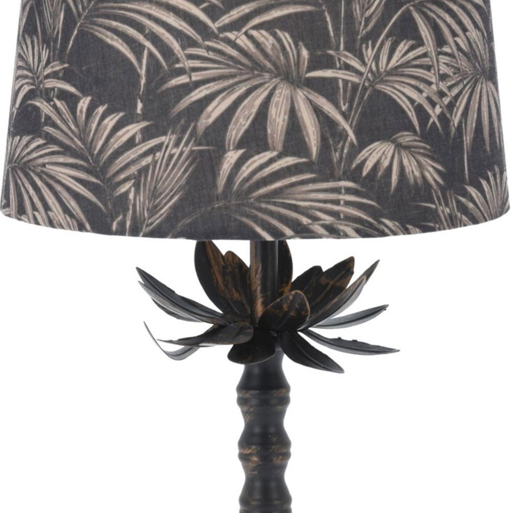 Ta wyrafinowana lampa stołowa łączy w sobie klasykę i nowoczesność. Złote liście na czarnym abażurze nadają jej elegancji, a metalowa podstawa w stylu vintage dodaje charakteru. Idealna do różnorodnych wnętrz, lampa zapewni przytulne oświetlenie i stanie się wyjątkowym elementem dekoracyjnym w każdym pomieszczeniu.