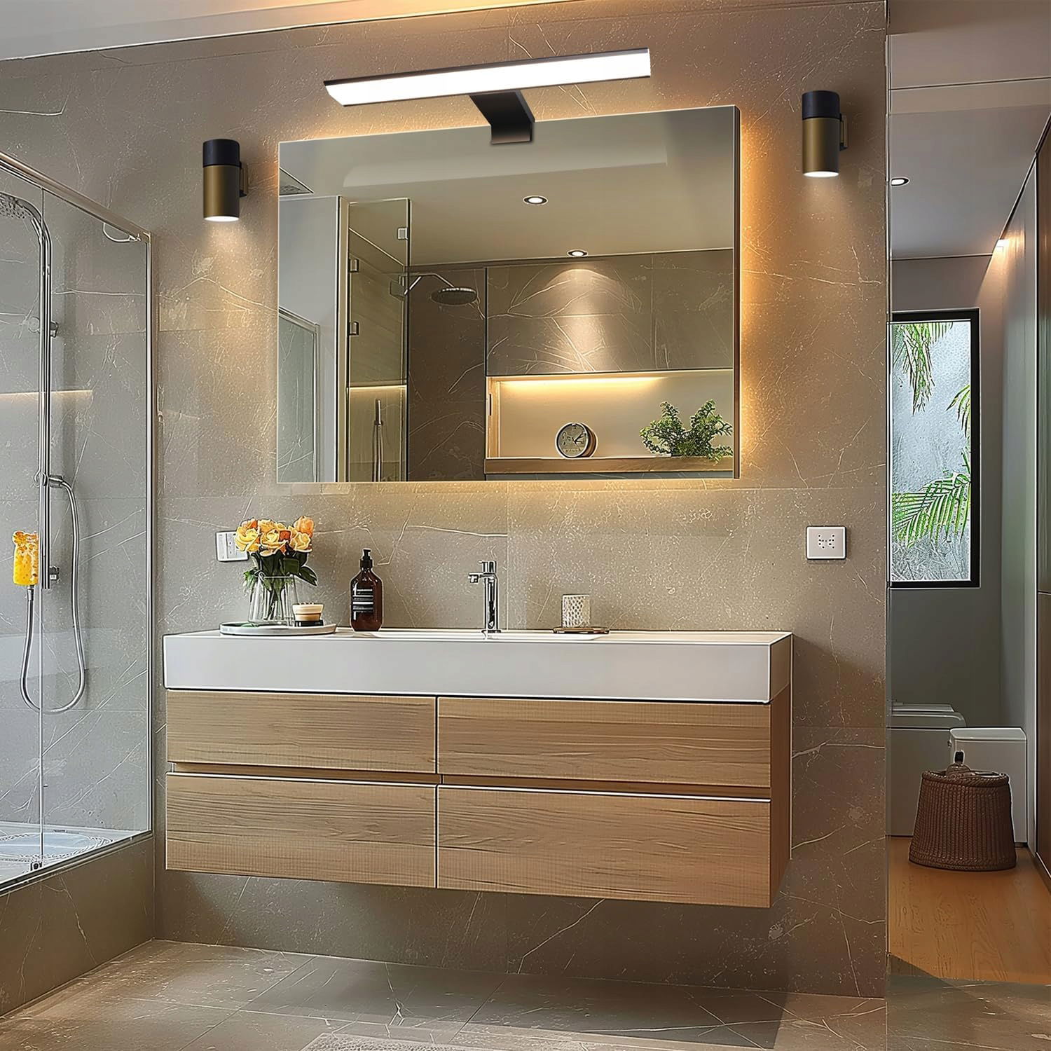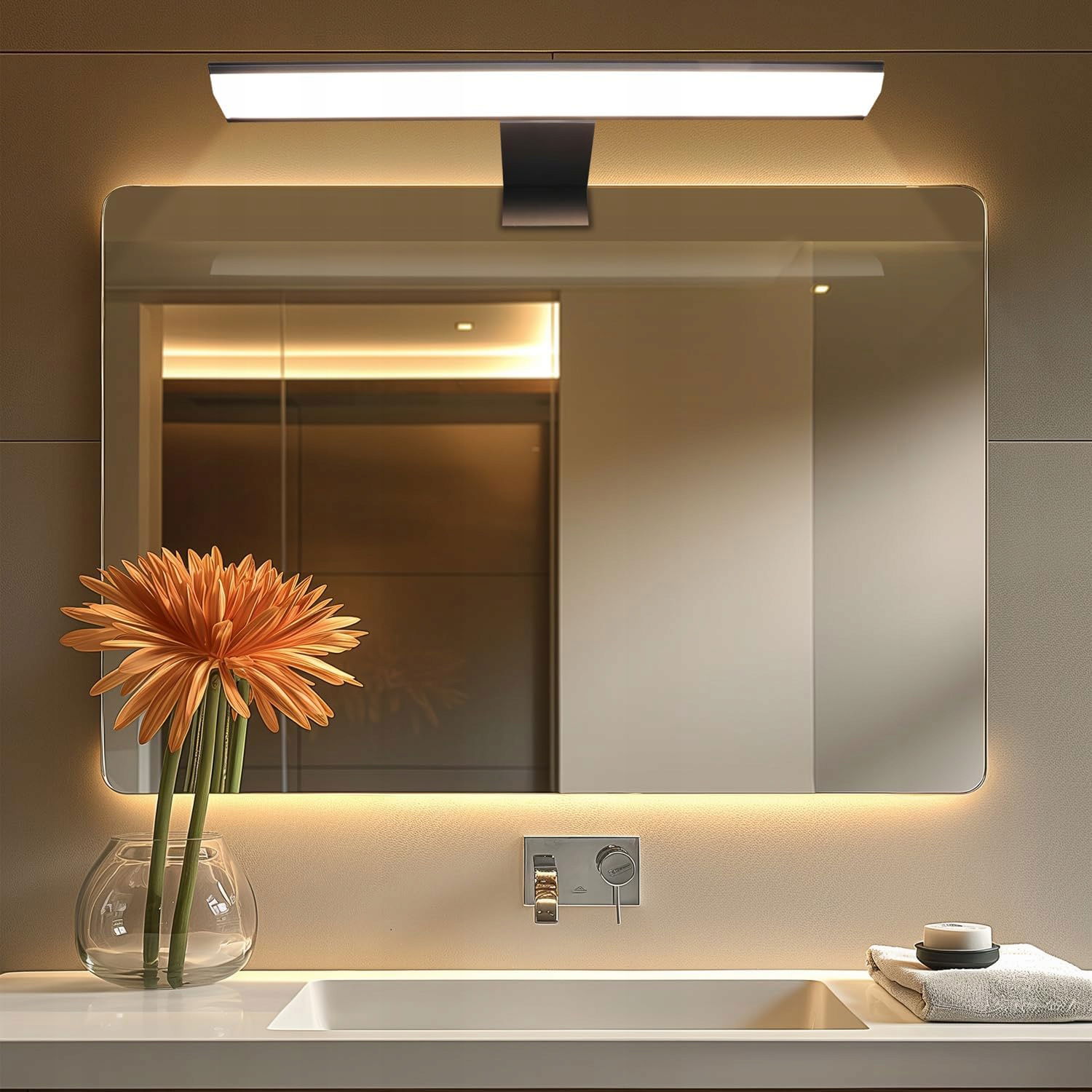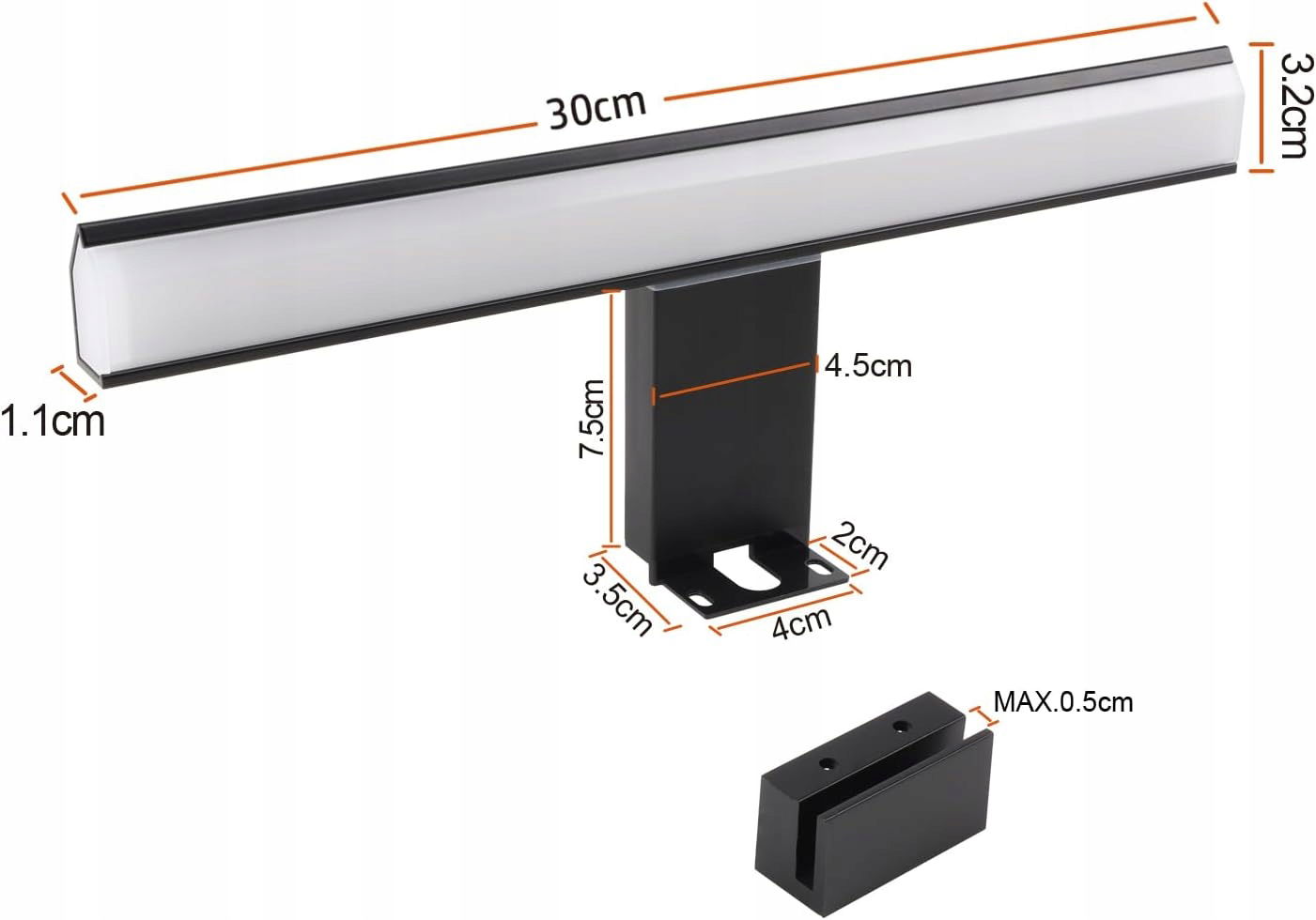 Ta lampa łazienkowa o długości 30 cm oferuje wyjątkową jasność przy zaledwie 8 W, zapewniając 580 lumenów. Jest idealna do codziennych czynności w łazience, dzięki czemu zasięg światła jest wystarczający do precyzyjnego makijażu i innych zadań.